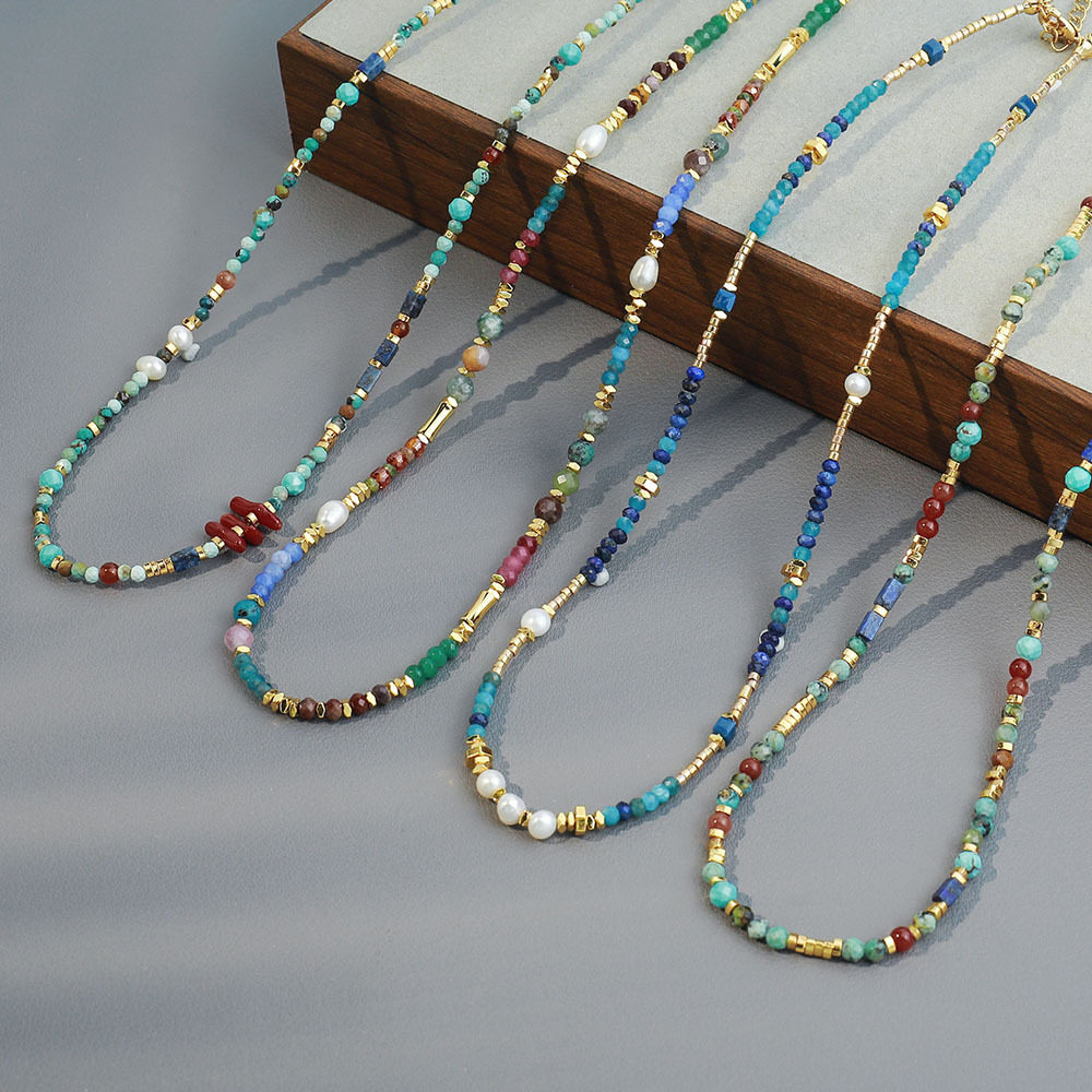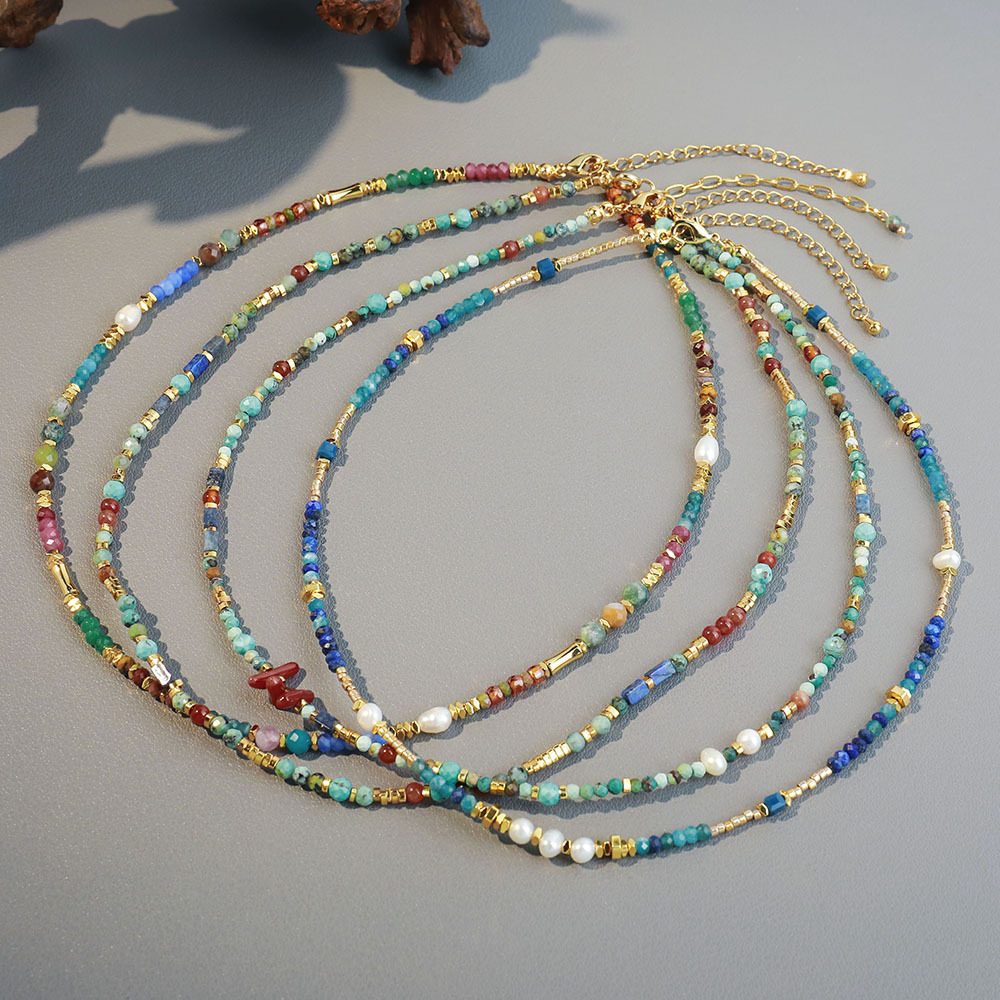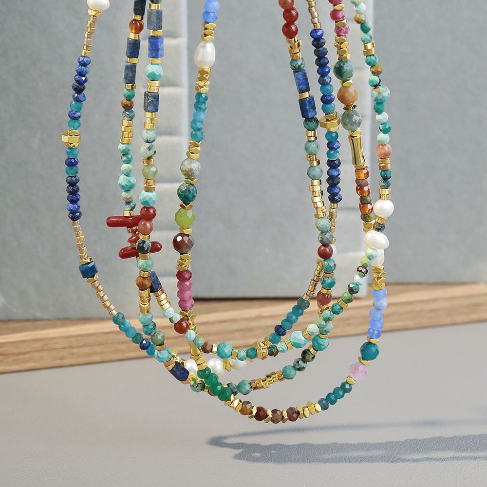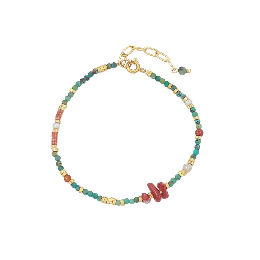 英国Cherry Kitty春季彩色非洲松石红色珊瑚手工串珠项链波
