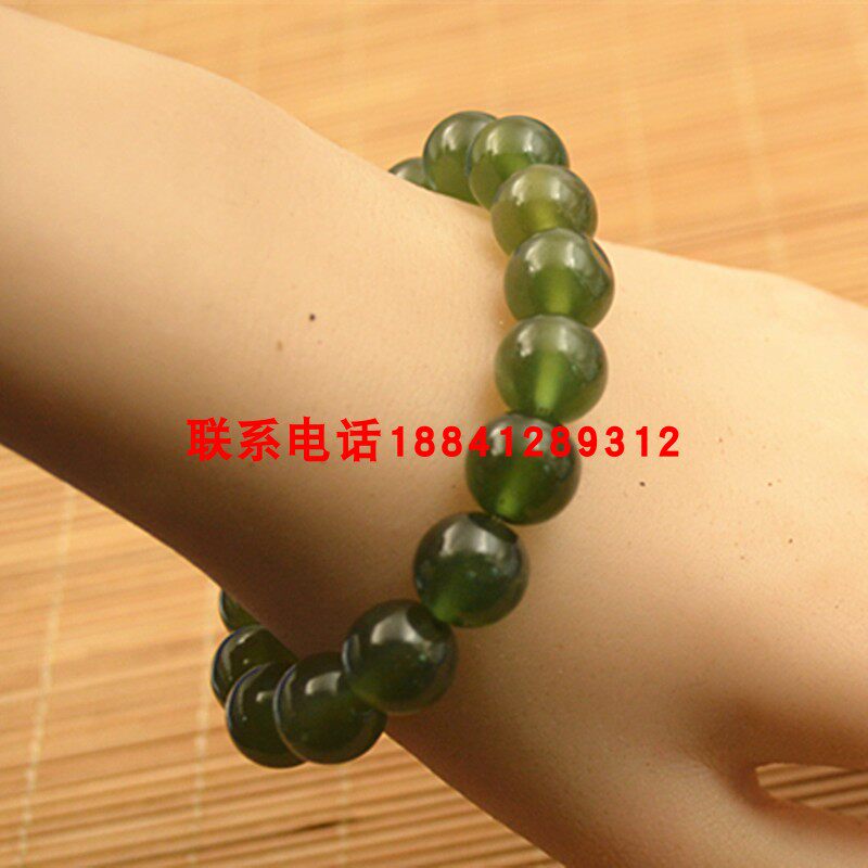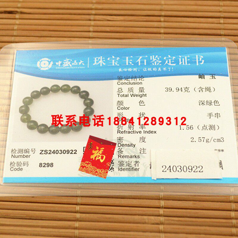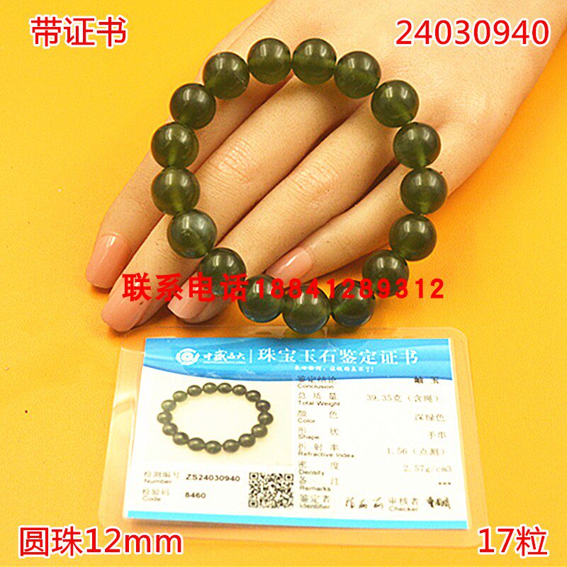 天然保真玉石手串岫玉12mm冰种深绿色玉珠带证书路路通手链