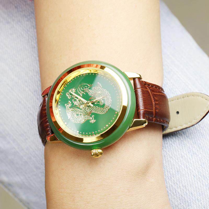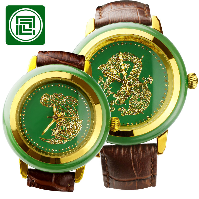 2026念玉天然和田玉手表金色龙凤男女款防水新款碧玉石英表真皮玉