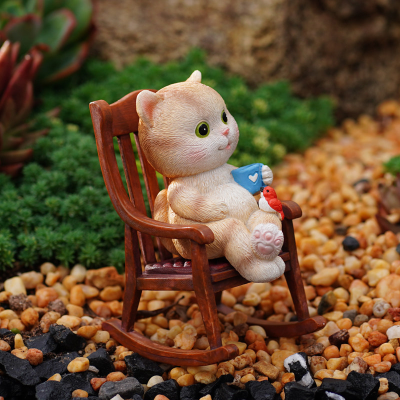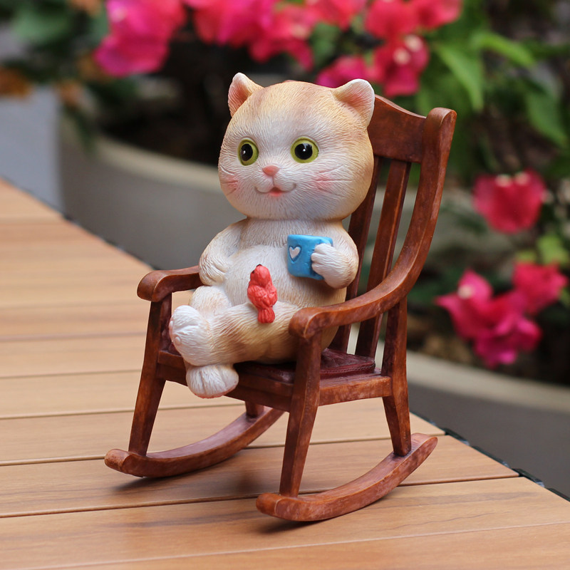可爱小猫咪喝咖啡摇椅办公室桌面摆件阳台庭院花盆栽花园装饰礼物