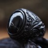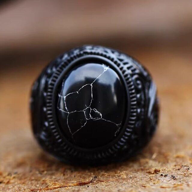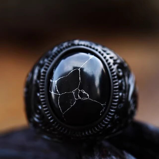 高级感黑松石钛钢戒指礼物个性时尚黑色潮牌单身不掉色食指扳指环