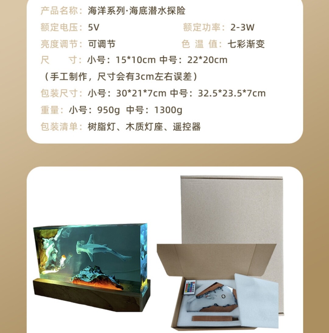 海底世界山脉景观溶洞锤头鲨鱼水母小夜灯床头灯氛围灯摆件礼物