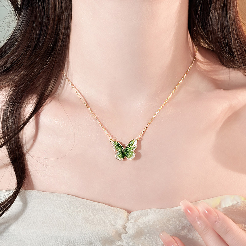 绿色蝴蝶项链女款2026新款颈链高级感轻奢小众精致锁骨链海边配饰