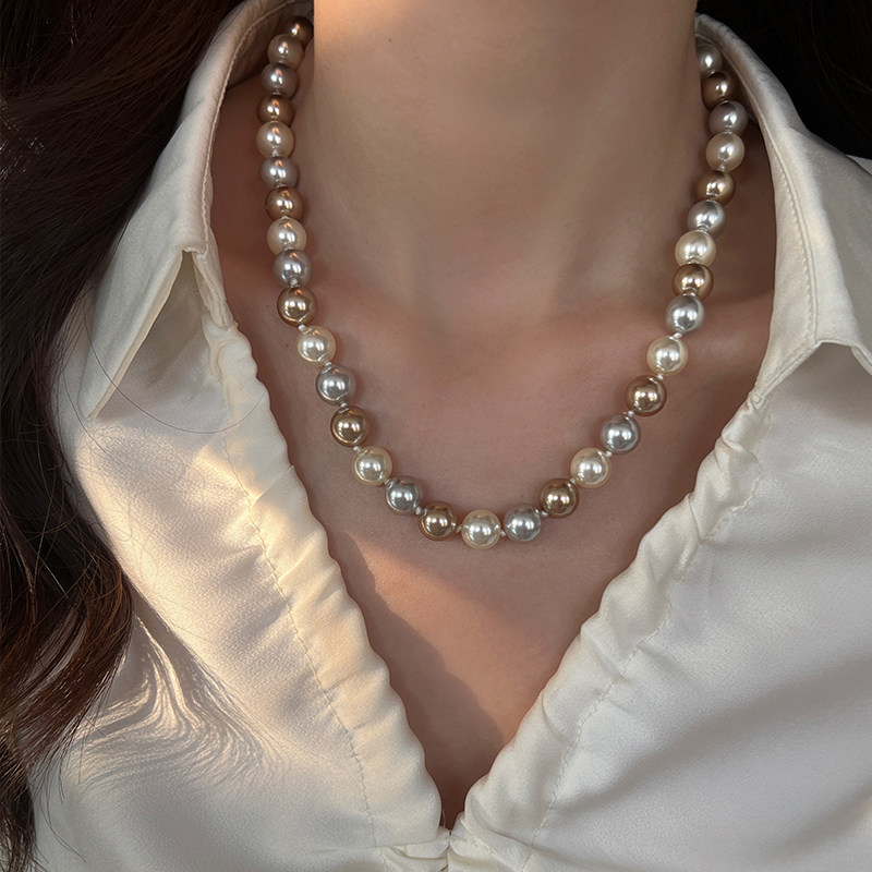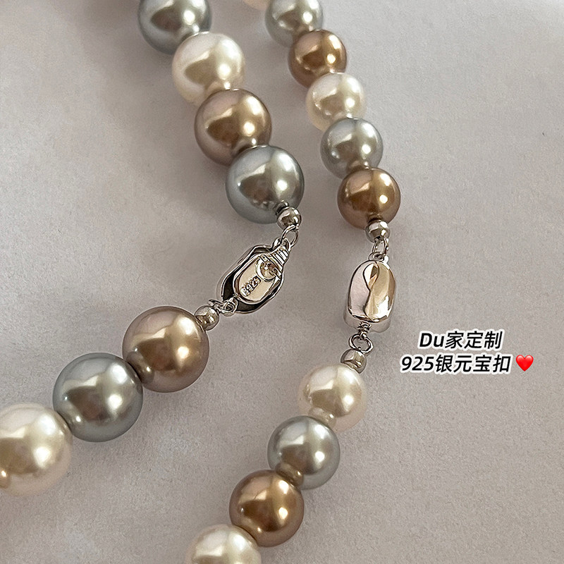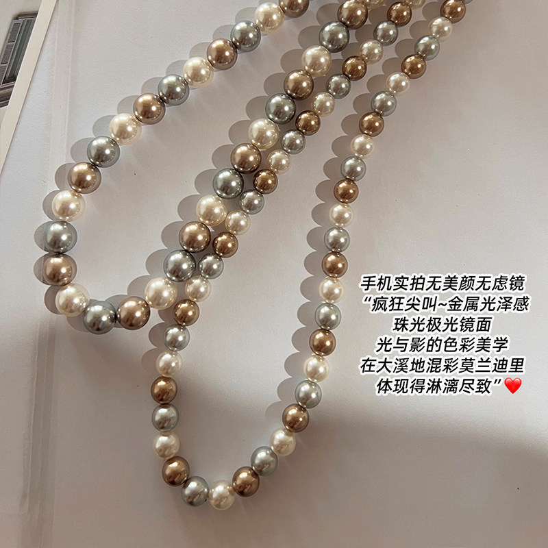 大溪地美拉德混彩施家珍珠项链2026夏天新款法式毛衣链颈链女轻奢
