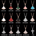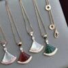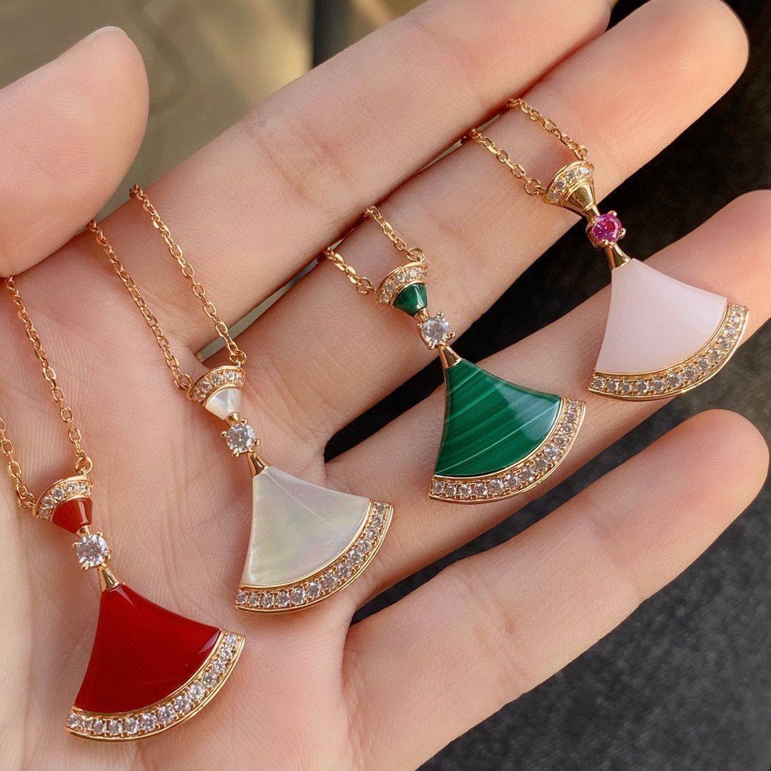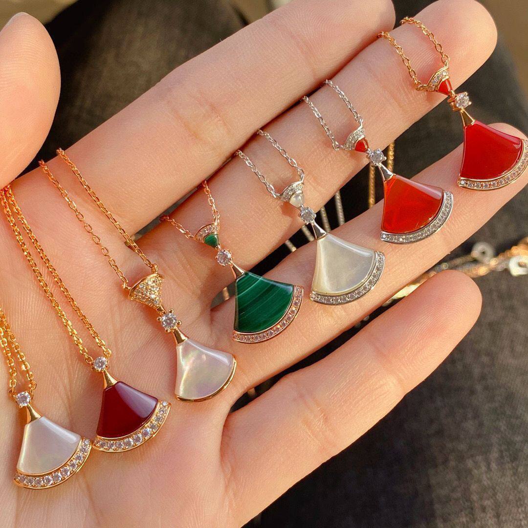 明星同款小扇子项链女18K玫瑰金天然白贝母玉髓扇形小裙子锁骨链