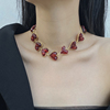 时髦Vintage复古红色爱心琉璃项链锁骨链女轻奢颈链晚会礼服颈链