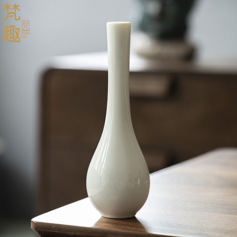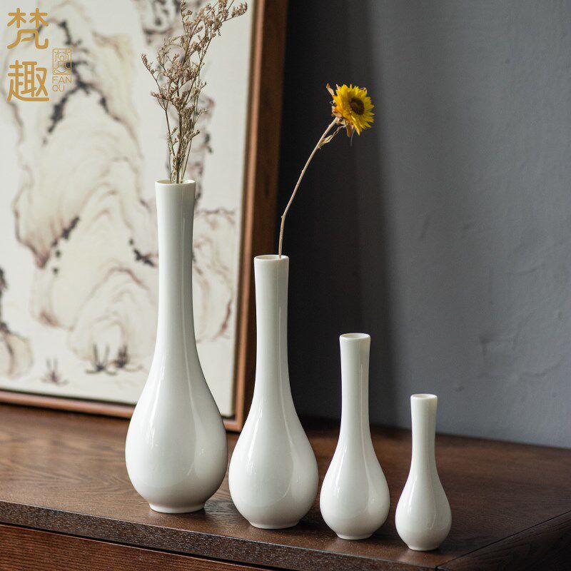 玉净瓶陶瓷白色花插花器家居客厅餐厅禅意摆件观音瓶供佛小花瓶