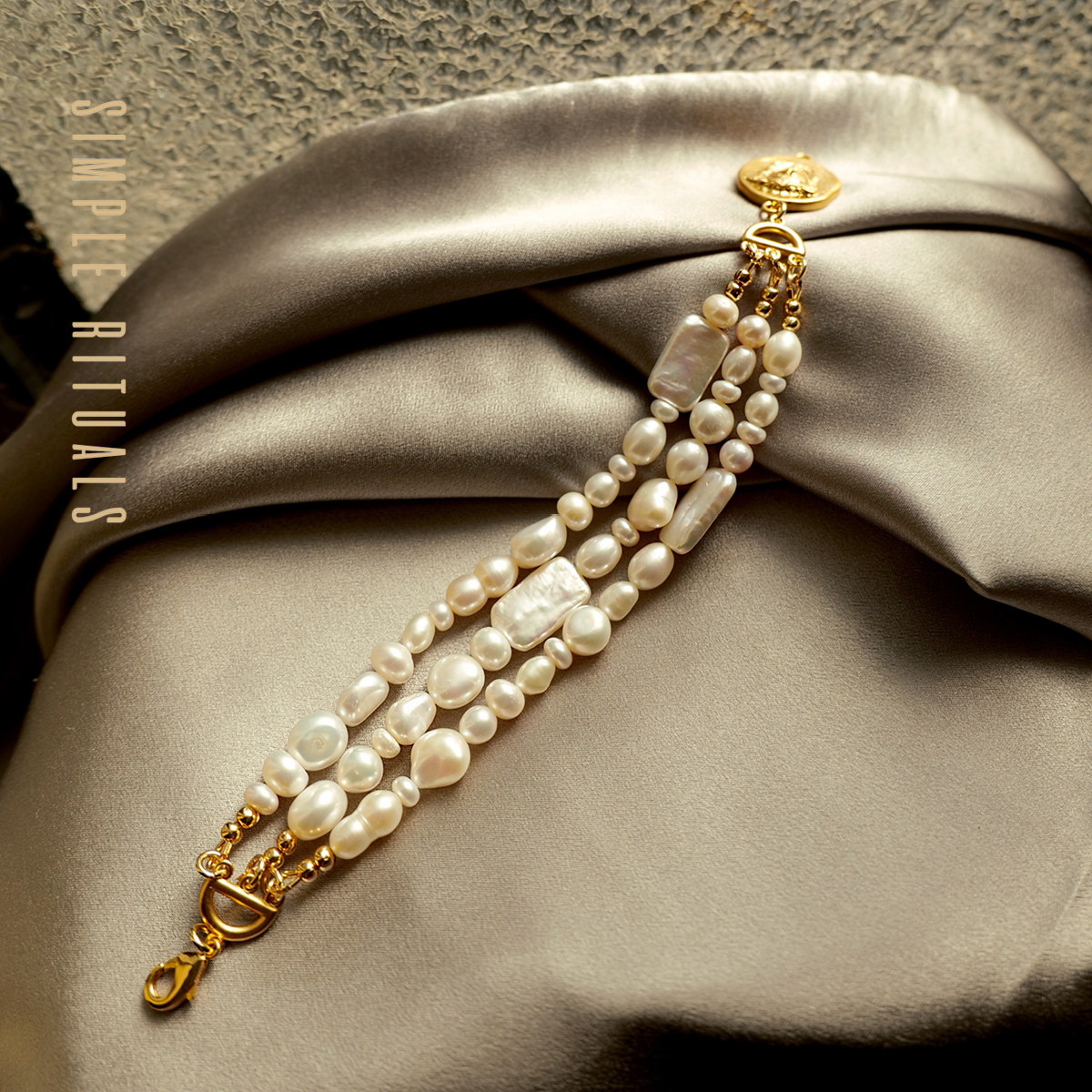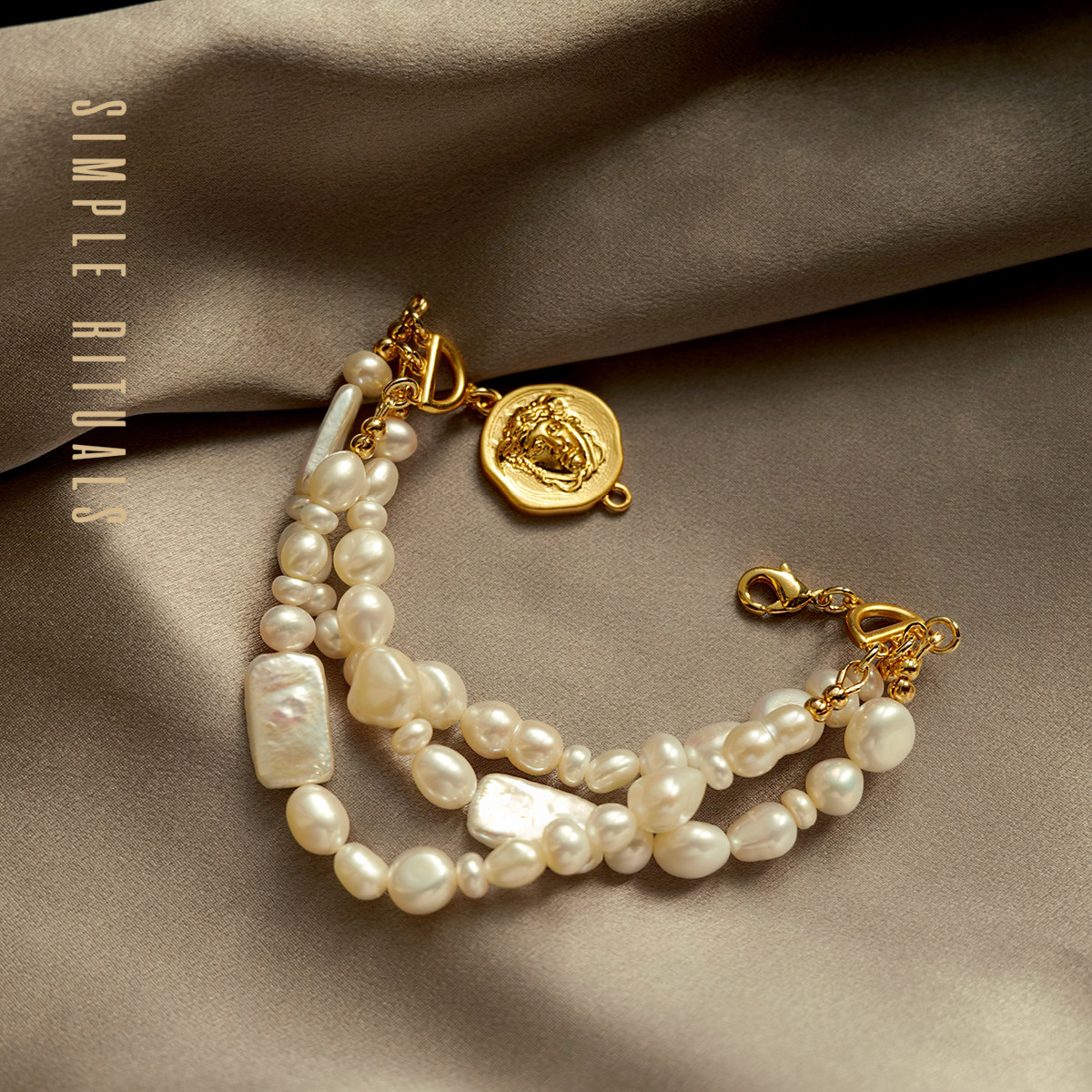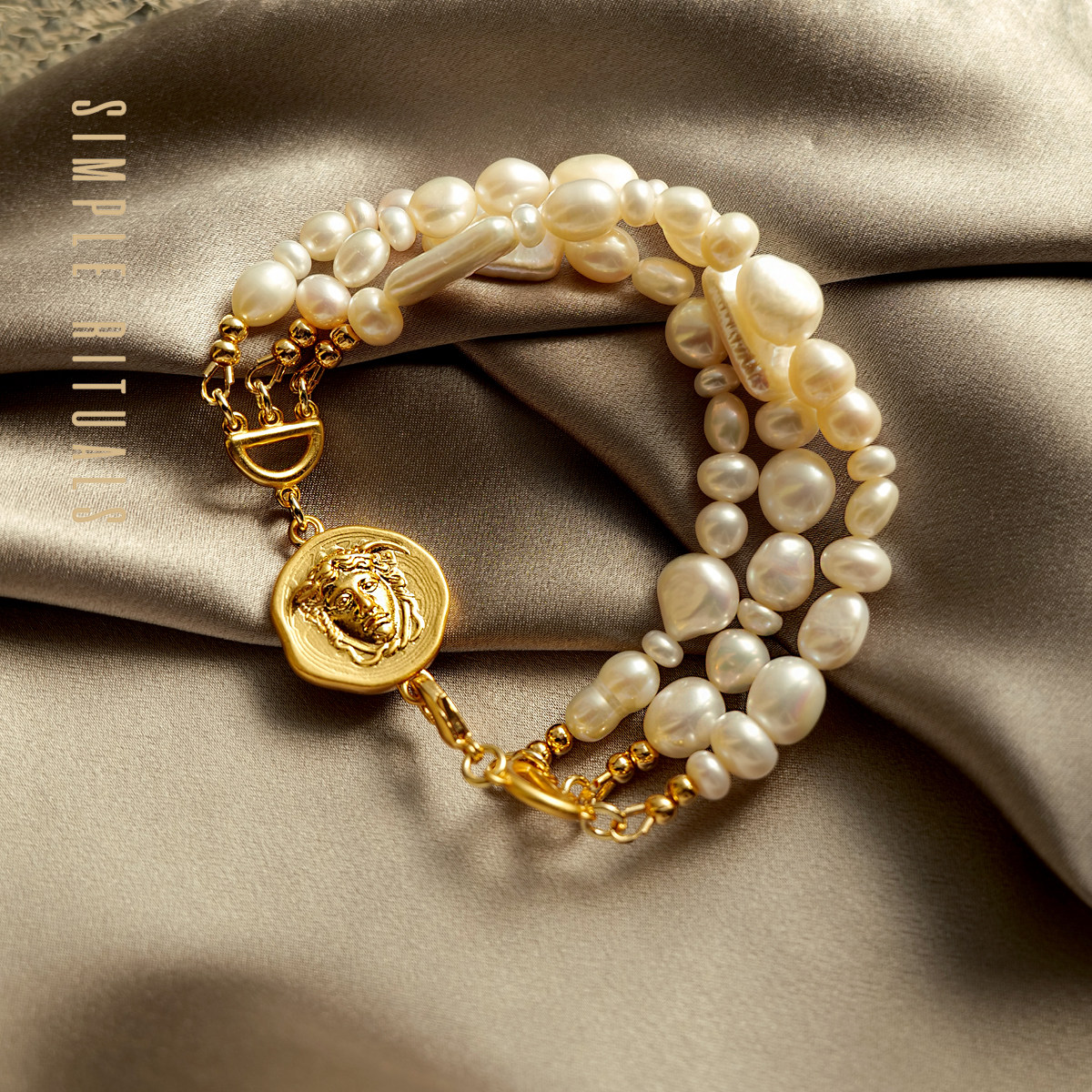 Simple Rituals复古美杜莎意大利奢贵浪漫复古设计三层珍珠手链
