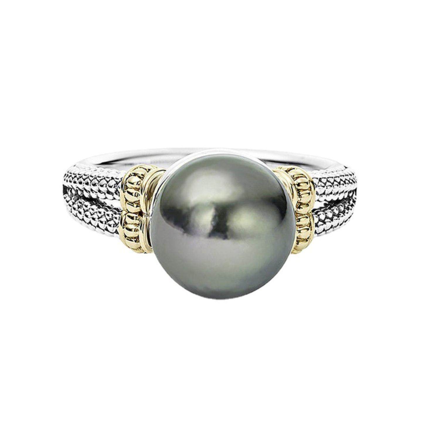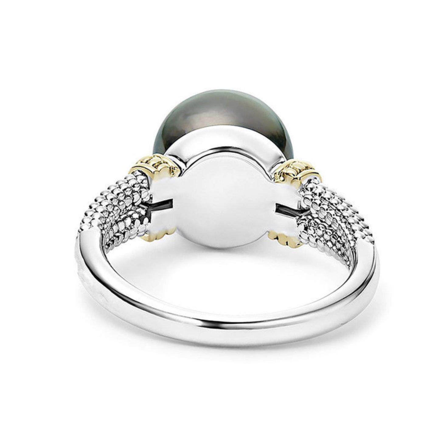 宁语货源ebay镶嵌灰色珍珠戒指 欧美wish圆形镀925银订婚指环
