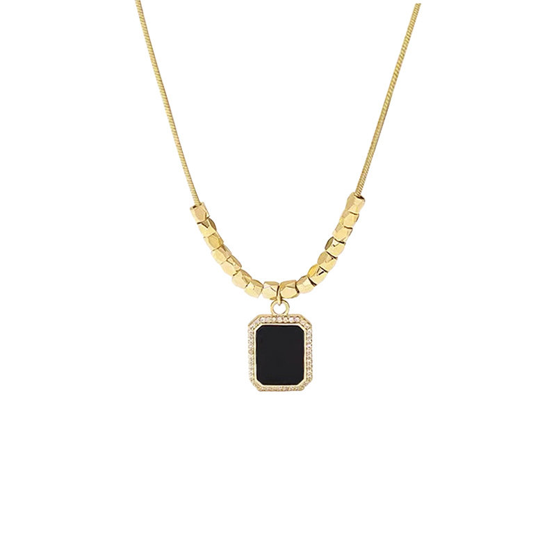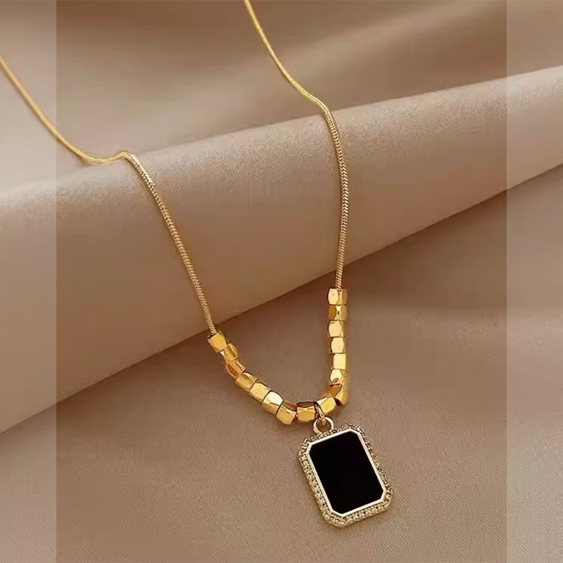 黑色方牌吊坠项链女士轻奢高级感复古锁骨链新款时尚简约颈链配饰