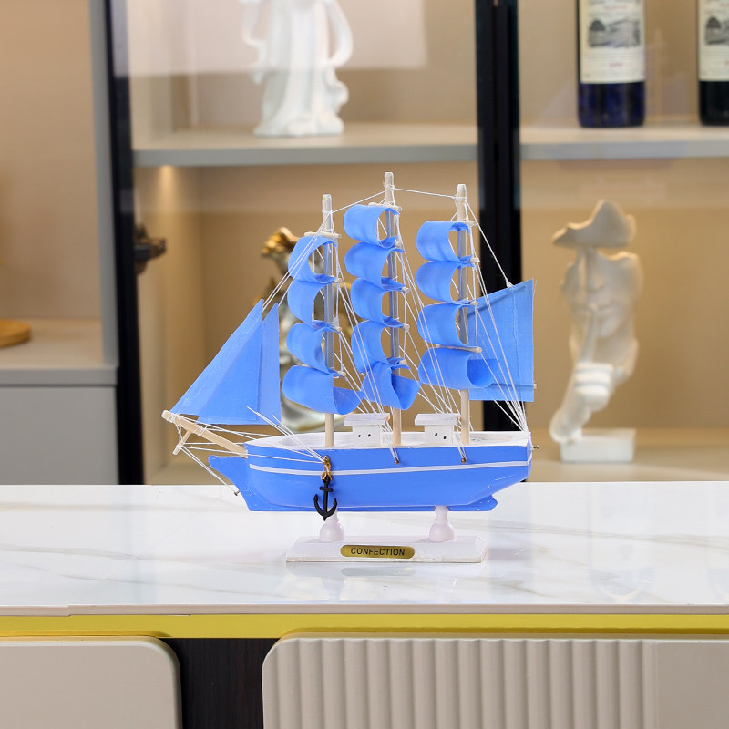 创意一帆风顺帆船摆件仿真模型船木船地中海客厅海盗船装饰品礼物