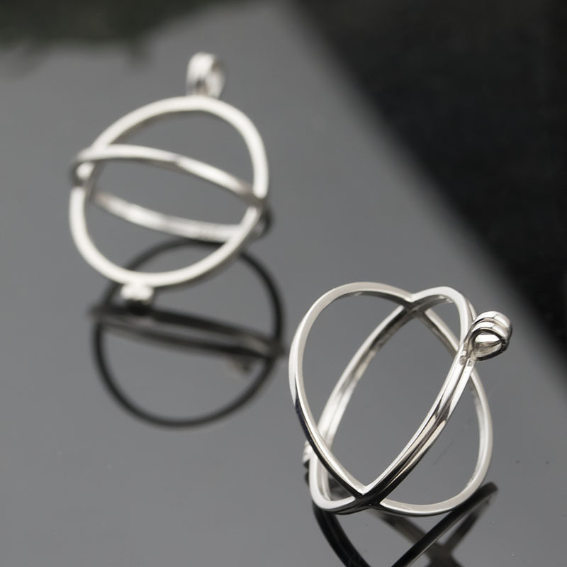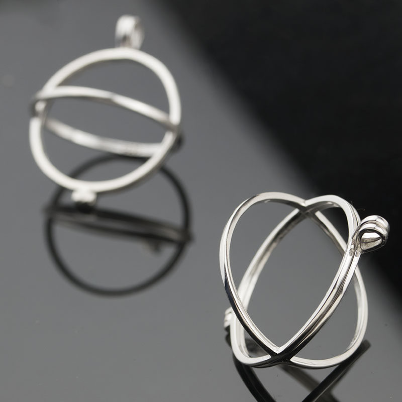 s925纯银圆珠珍珠吊坠空托大球笼灯笼子扣头蜜蜡免打孔DIY20-30