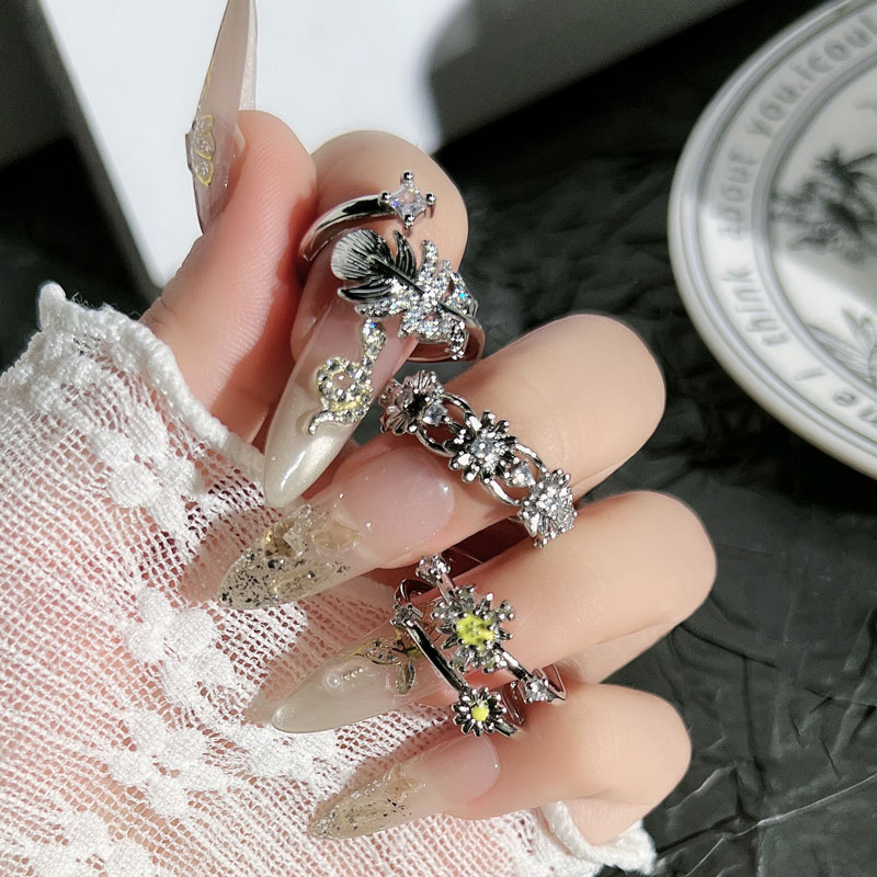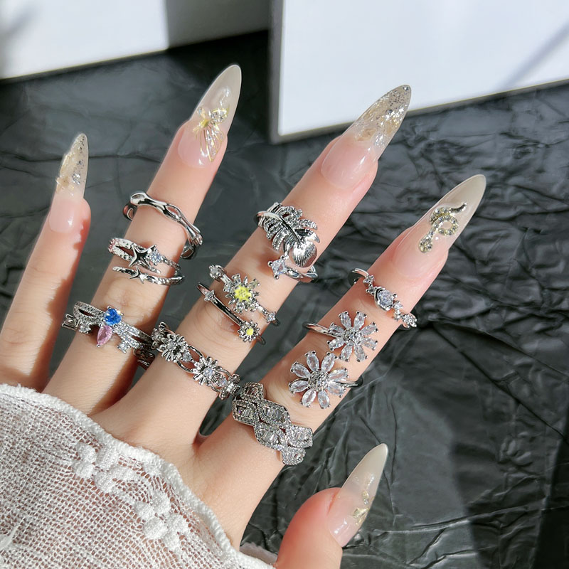 韩版高级感轻奢满钻花朵羽毛星芒戒指女气质时尚小众冷淡风指环潮