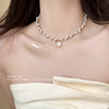 双层流苏珍珠项链女款2024新款山茶花锁骨链轻奢高级感脖颈链配饰