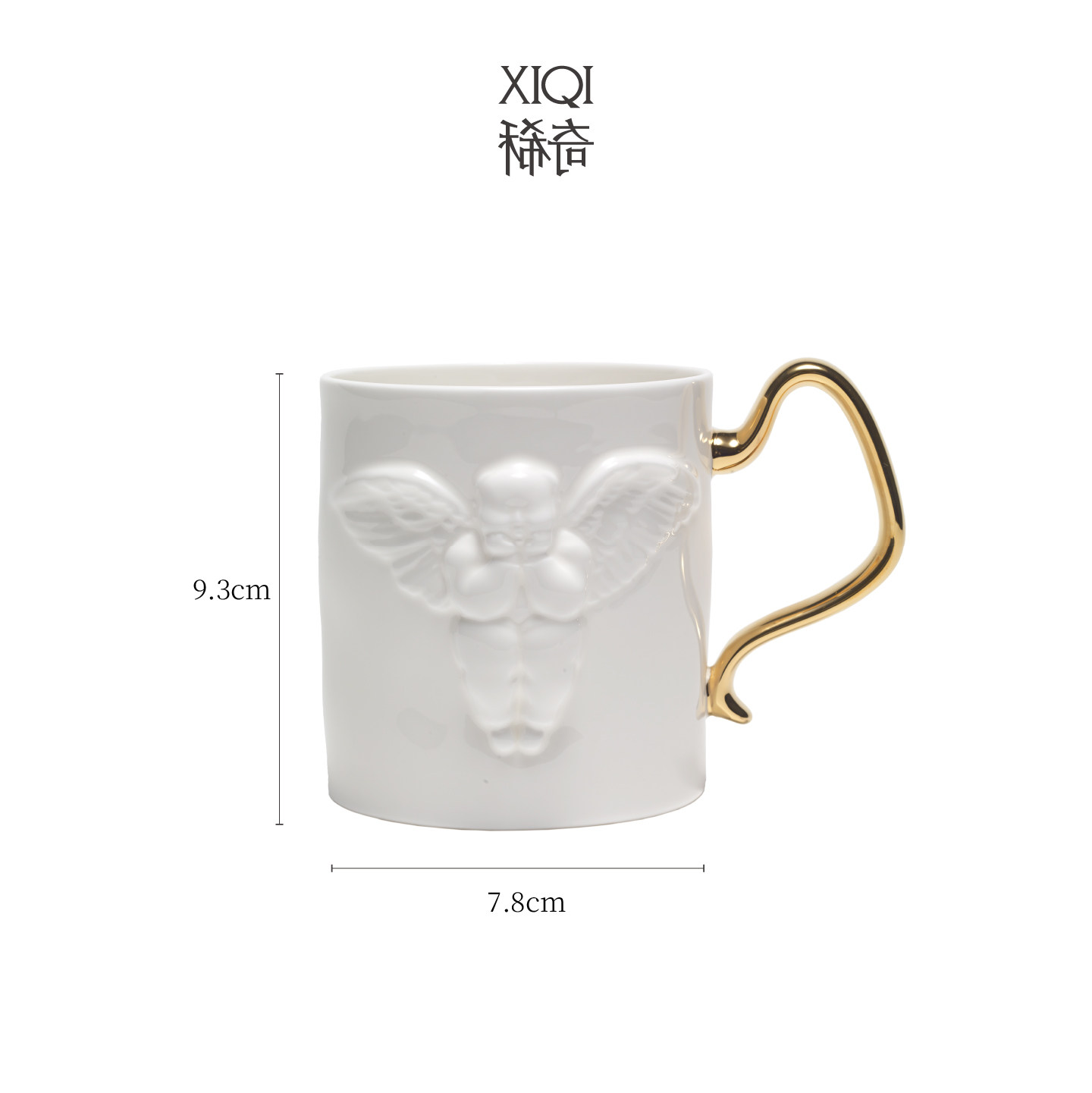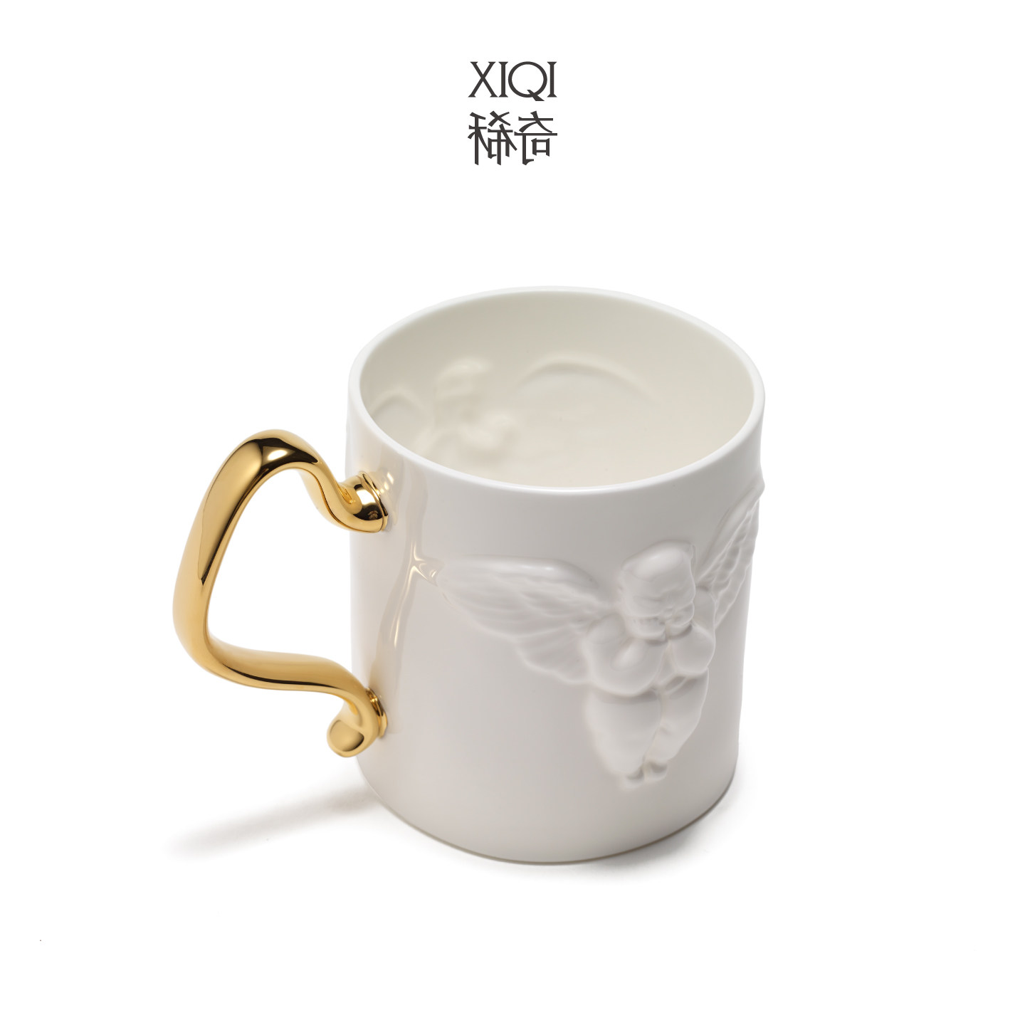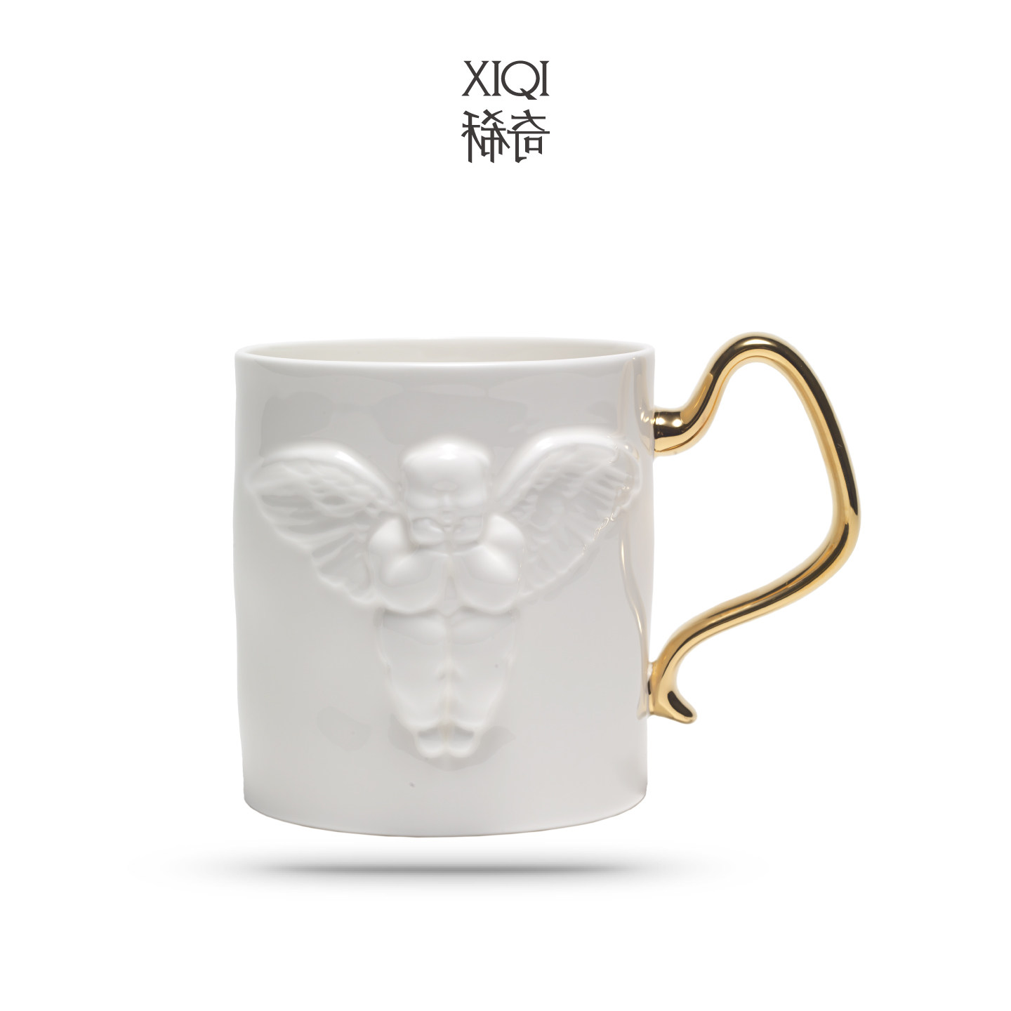 稀奇艺术天使浮雕红茶骨瓷杯子精美包装现代礼物日常送礼金色把手