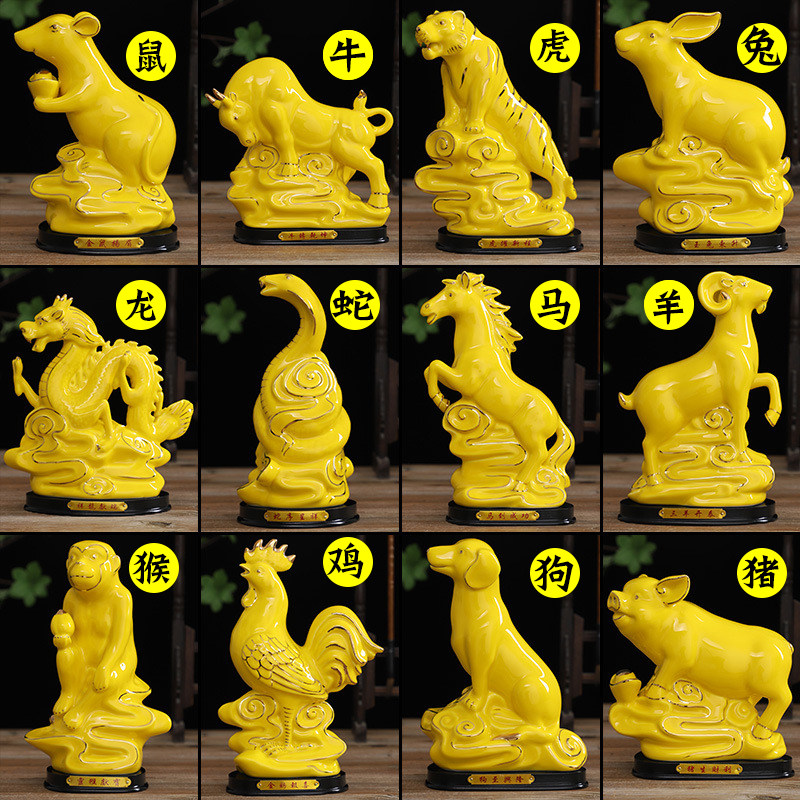 陶瓷十二12生肖摆件补角黄色全套鼠牛虎兔龙羊猴狗猪家居装饰摆件