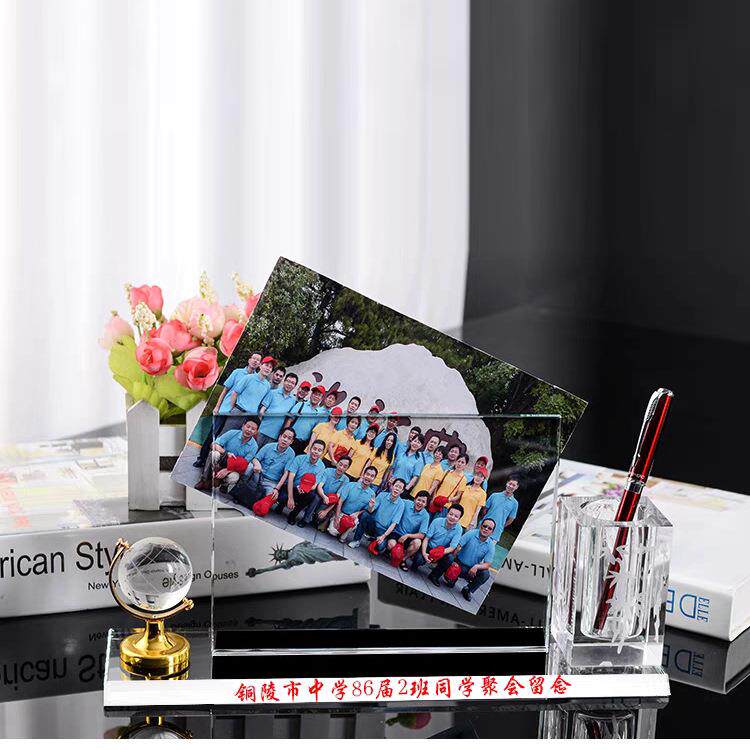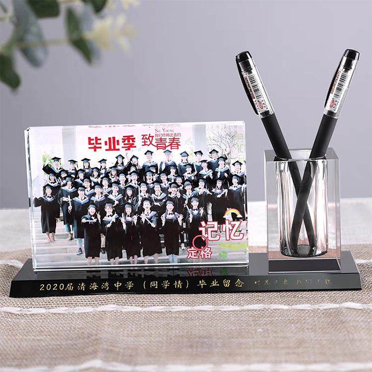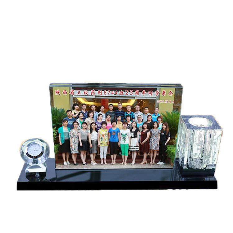 新款水晶相框笔筒三件套同学聚会教师节水晶摆件水晶笔筒纪念相册