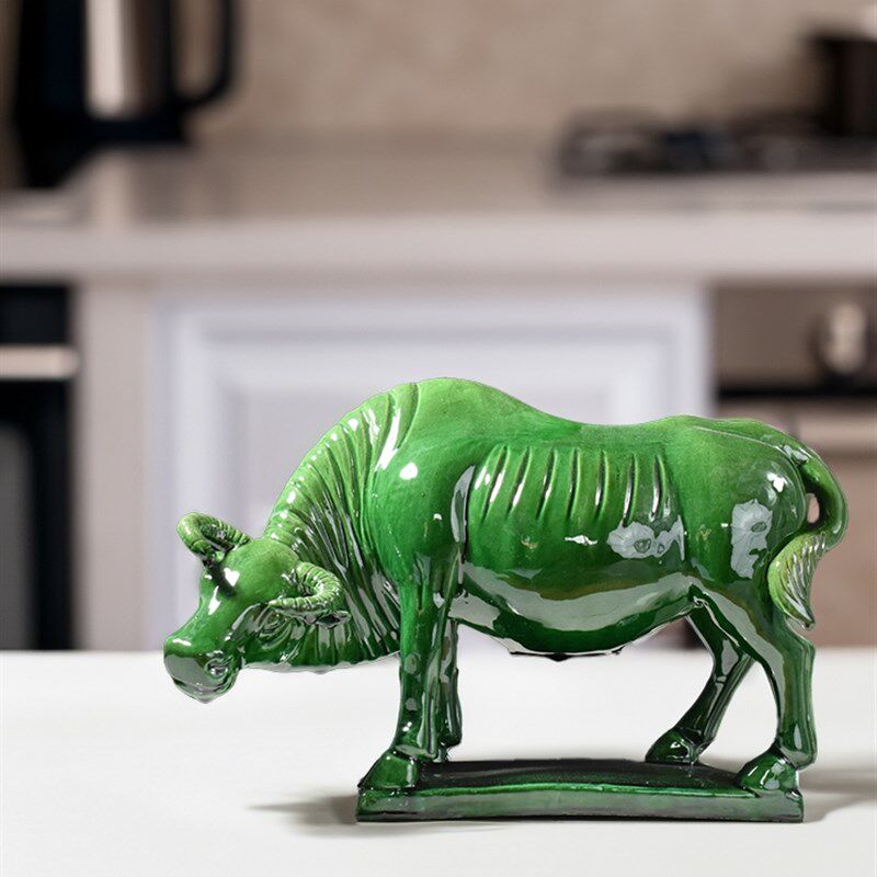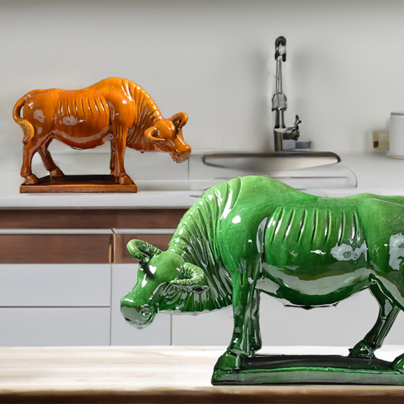 化妆室牛摆件正北厨房低头吸水牛陶瓷黄色水牛客厅阳台缺角工艺礼