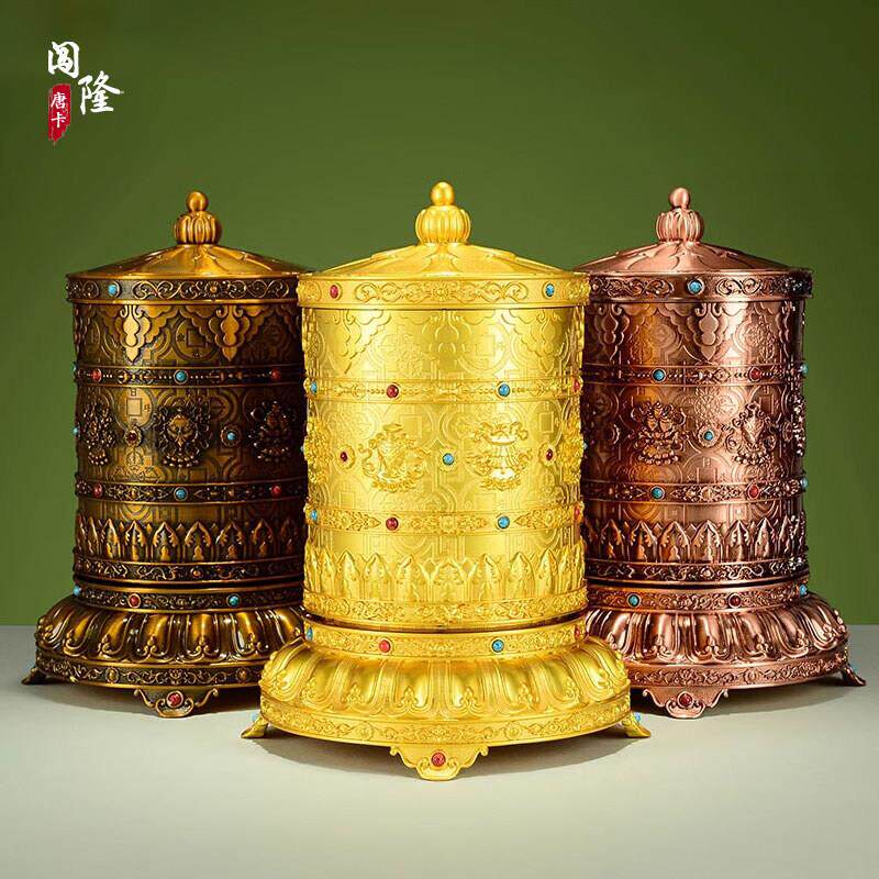 藏式转轮经筒 家用电动充电转轮 藏族转金筒客厅桌面转动装饰摆饰
