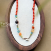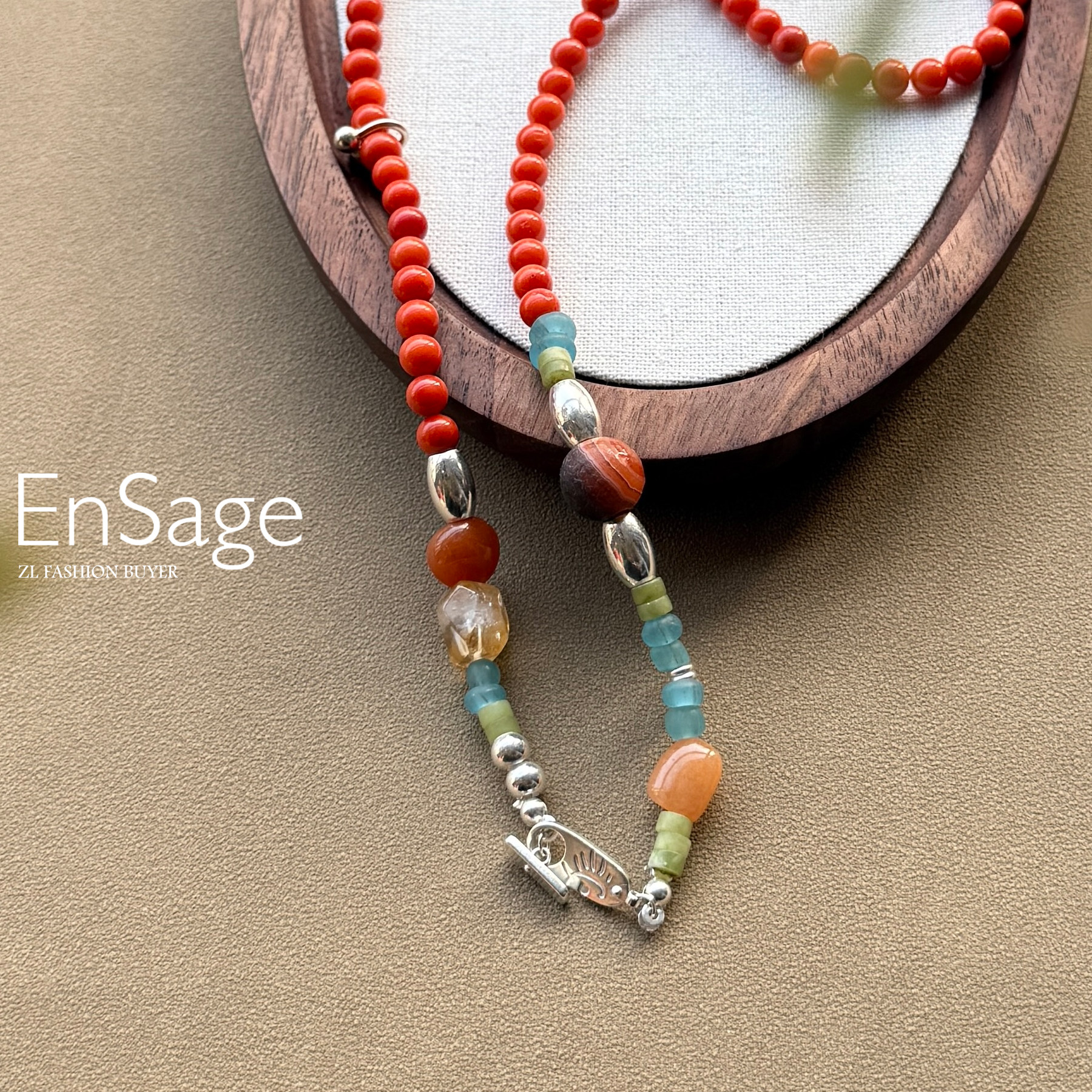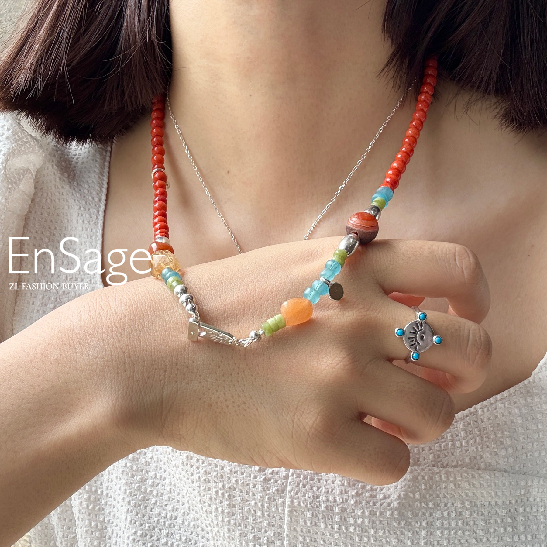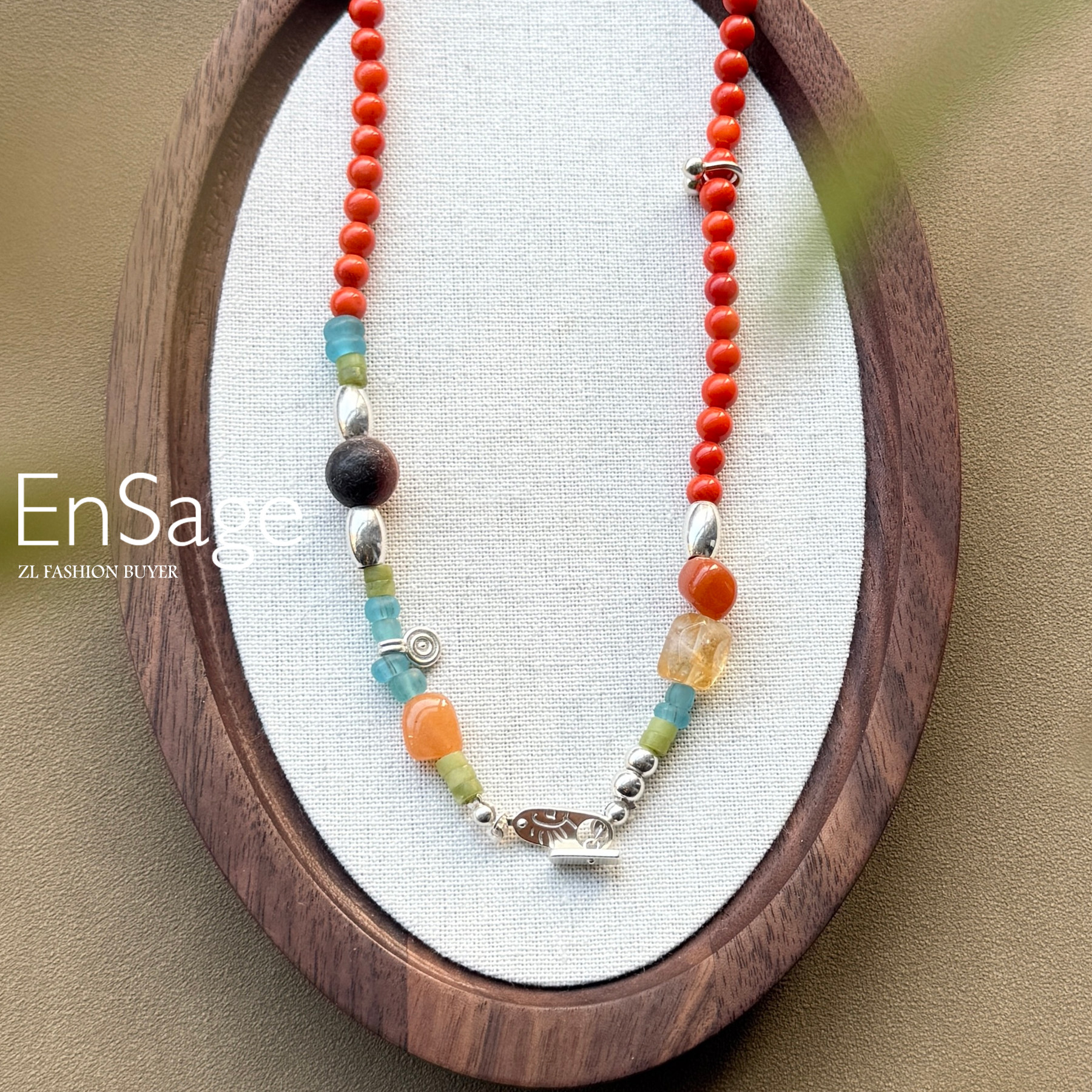 现货Ensage纯银橙色玛瑙琉璃珠橄榄石不规则串珠高级小众项链