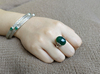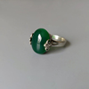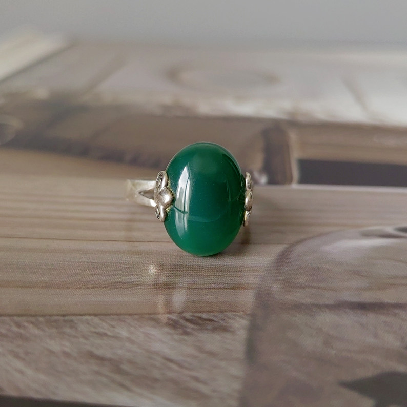 英式复古典雅925纯银手工雕花祖母绿缟玛瑙如意纹食指中指戒指女