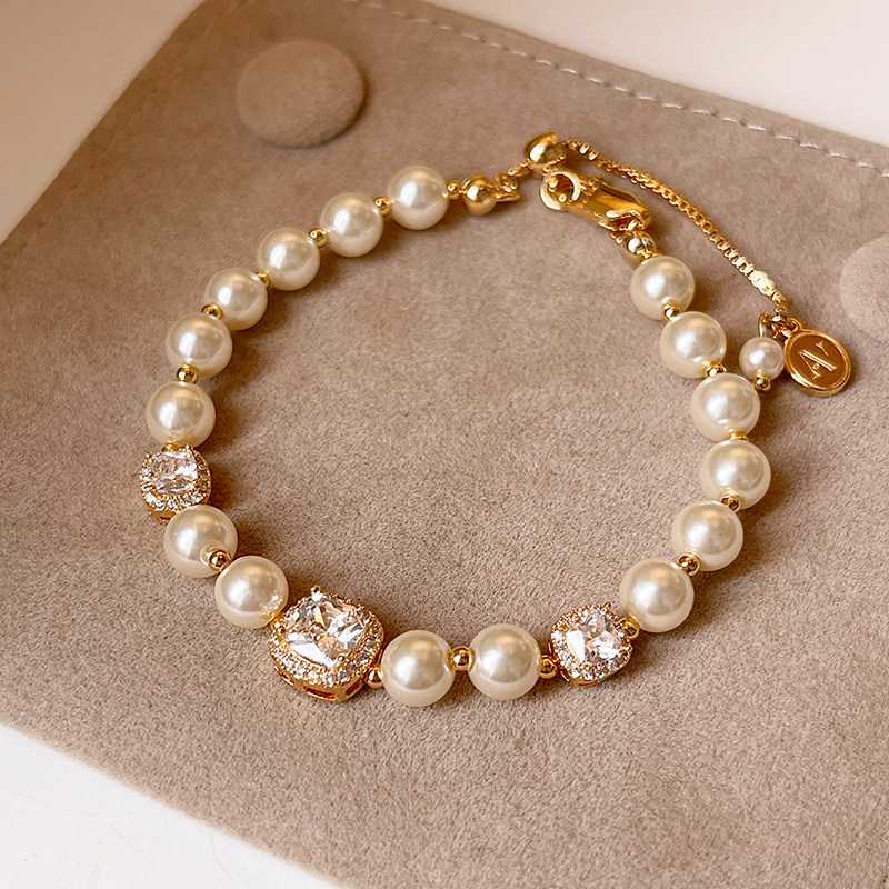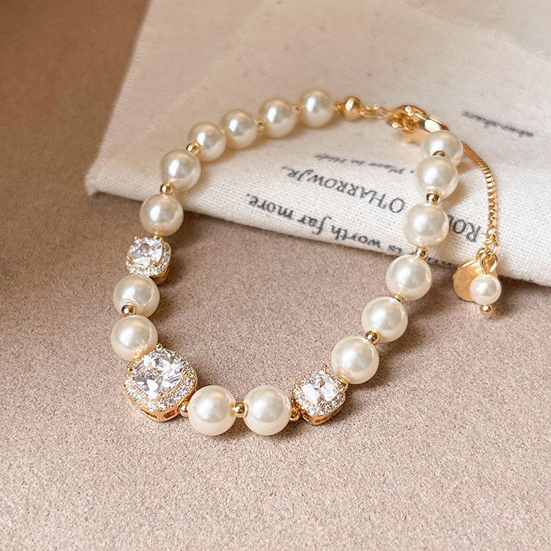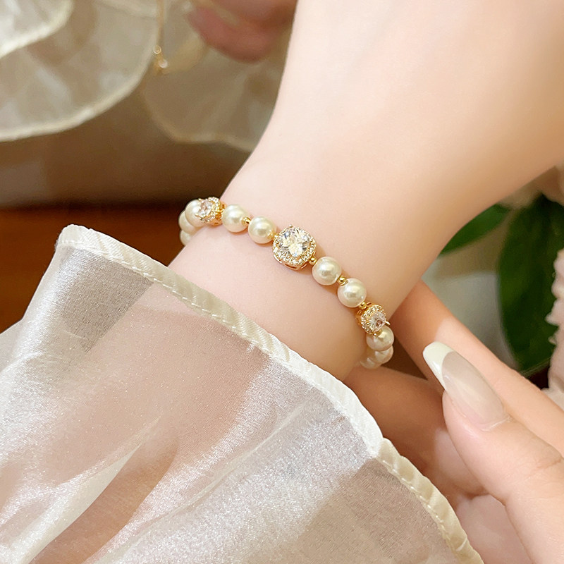 白色珍珠串珠方糖锆石手串手链女款闺蜜手饰2026新款轻奢小众精致