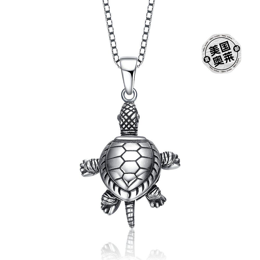 自营 GENEVIVE 纯银镀铑乌龟吊坠项链 - 银白色 美国奥莱直发