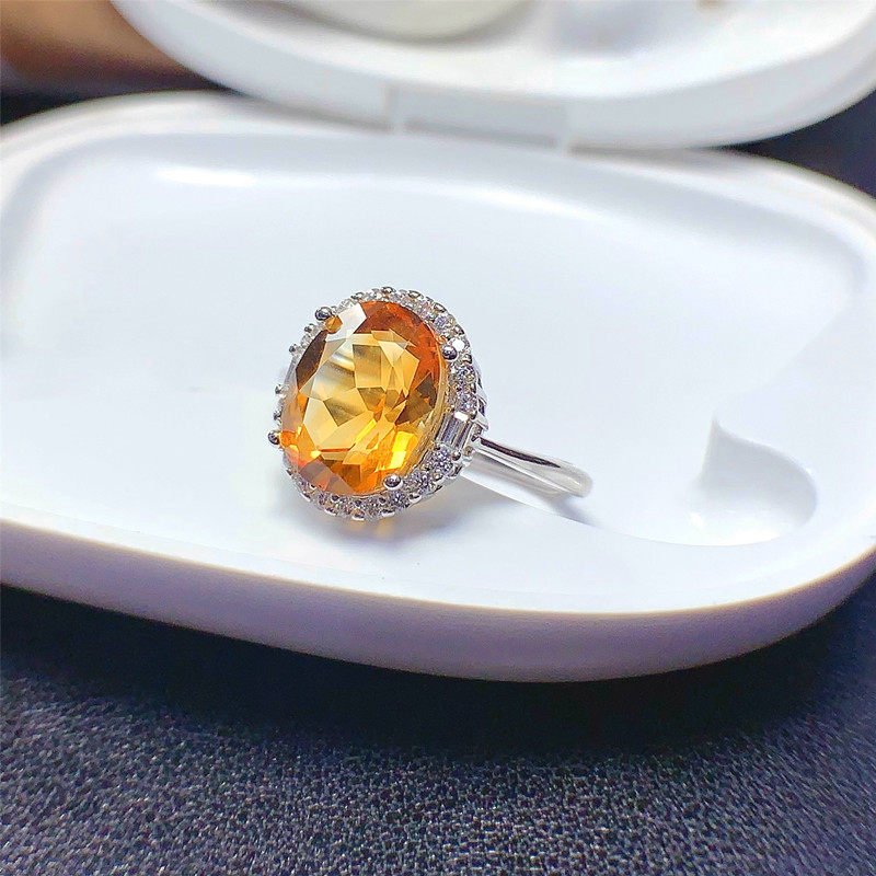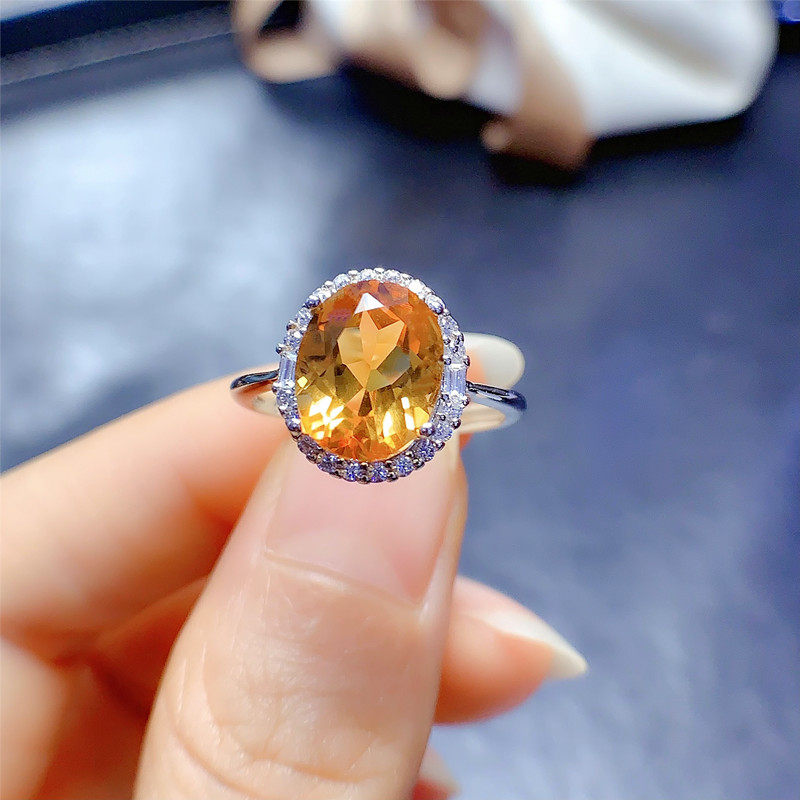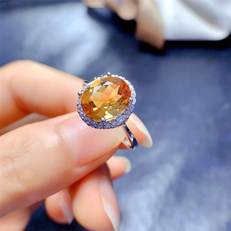 纯银镶嵌天然黄水晶戒指女精致简约高级感黄色宝石指环活口带证书