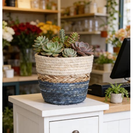 北欧式天然海草编织花盆藤编植物绿植伴娘家居装饰花器花篮收纳筐