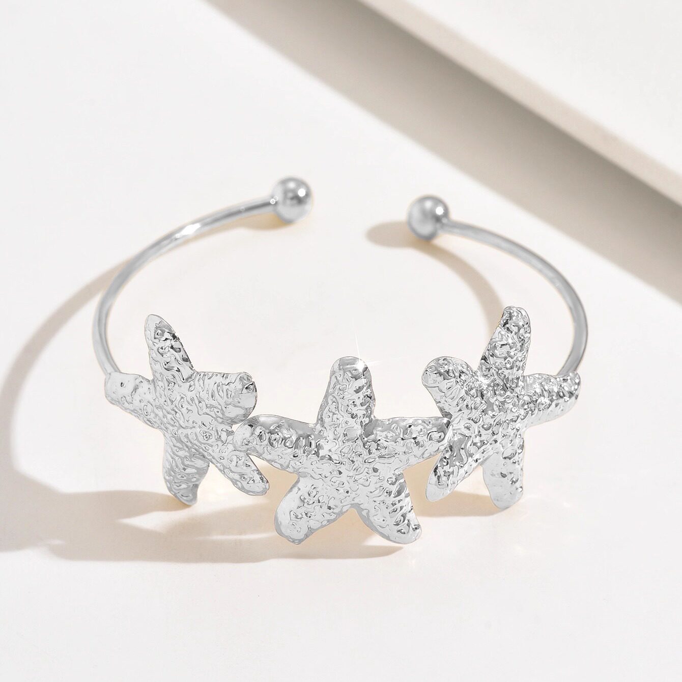 金属时尚海洋系列连环海星手镯开口可调节女士度假沙滩个性小众