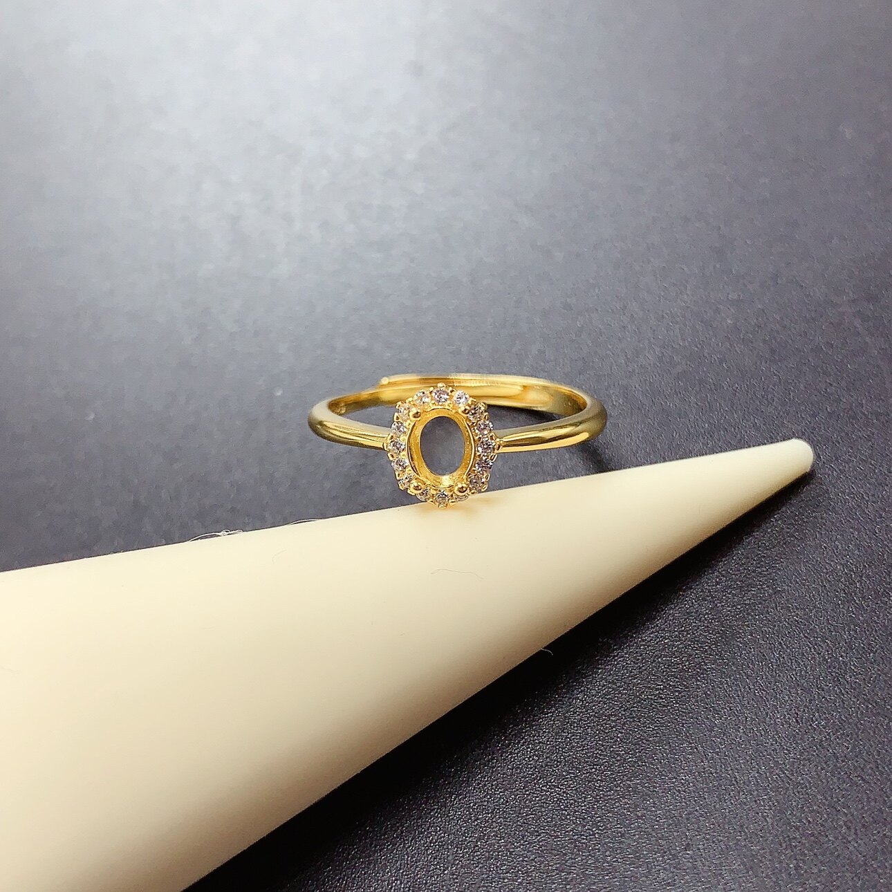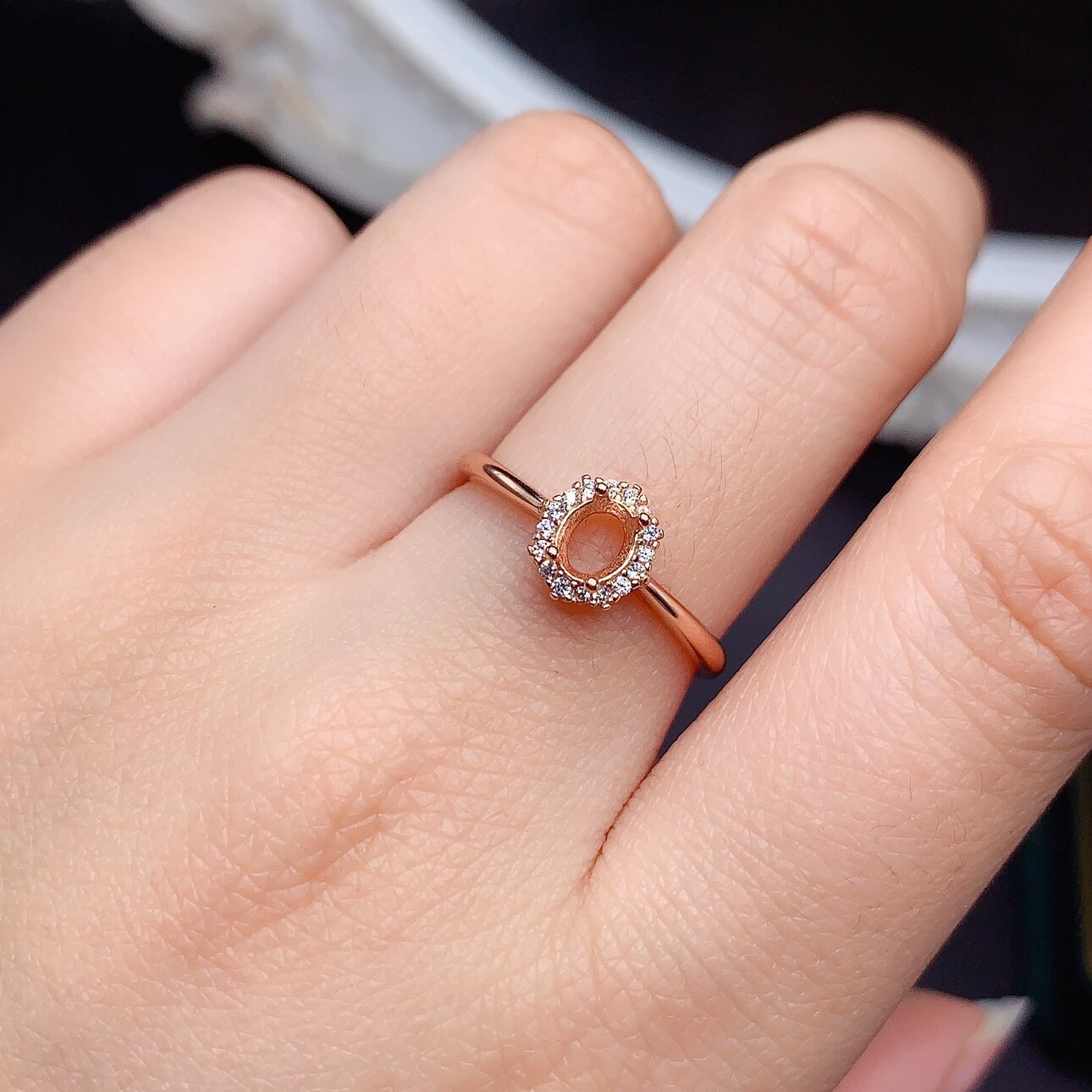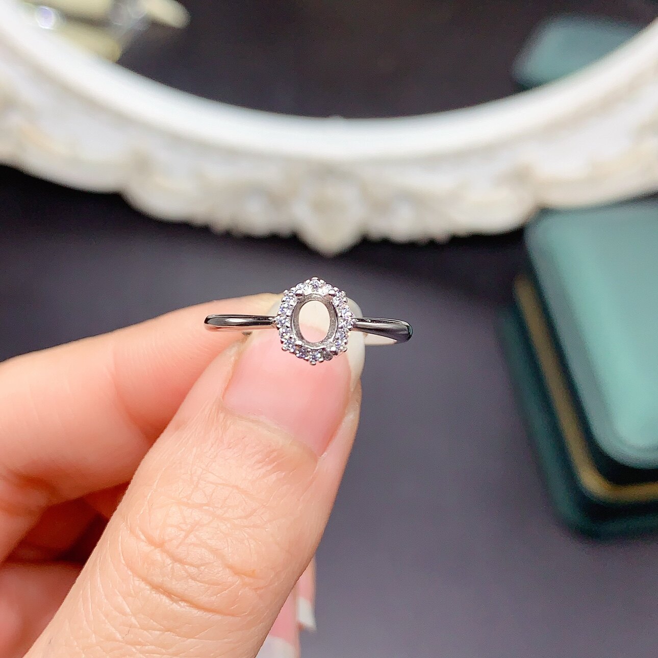 戒托女 s925银饰戒指空托 椭圆形4*5mm清新秀气简单带镶翡翠芬达