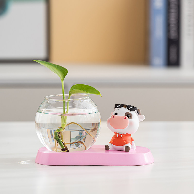 绿萝水培花盆花瓶透明玻璃插花花器客厅办公桌装饰品家居卡通摆件