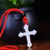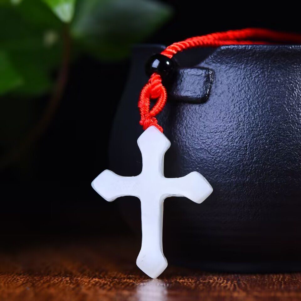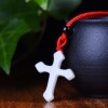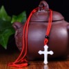 精致和田玉白色十字架吊坠红绳项链男女款通用包挂件简约玉石饰品
