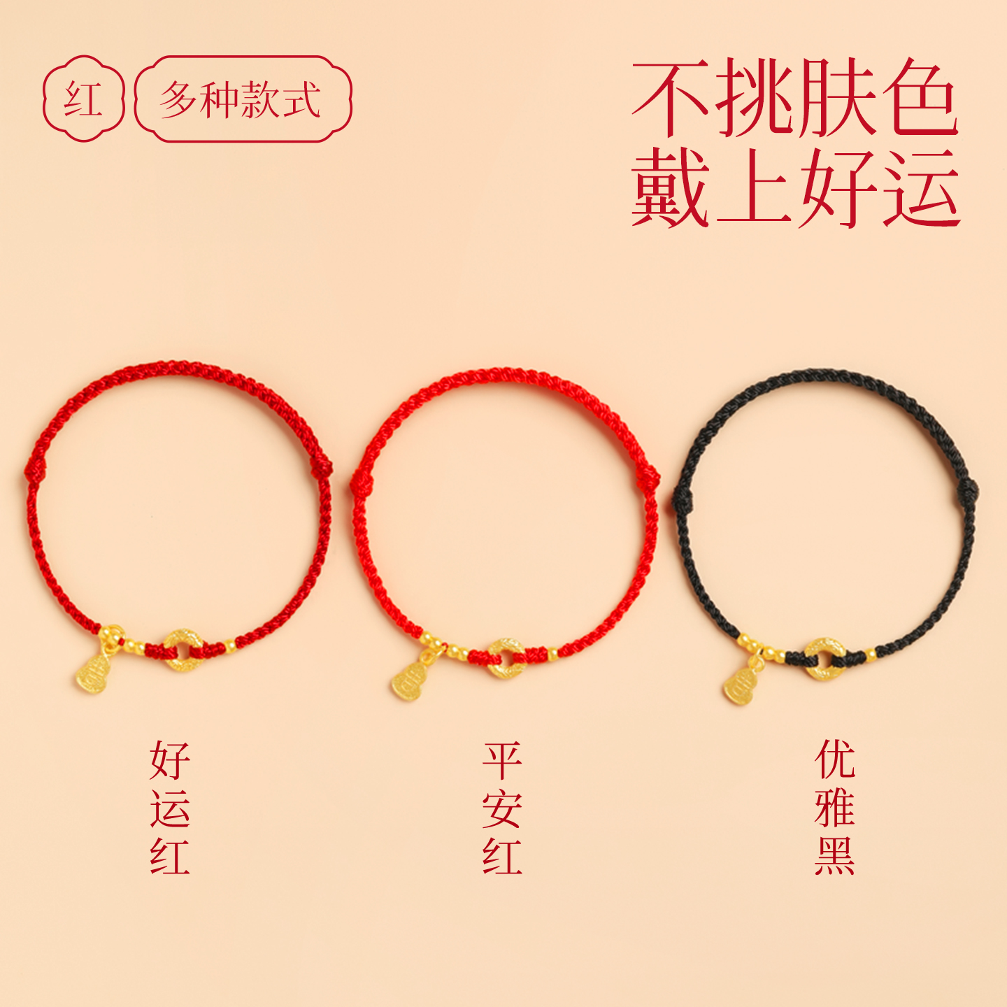 红绳手链本命年女轻奢高级感好运转运珠古法金平安扣小红手绳编织