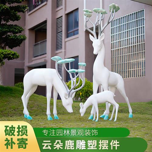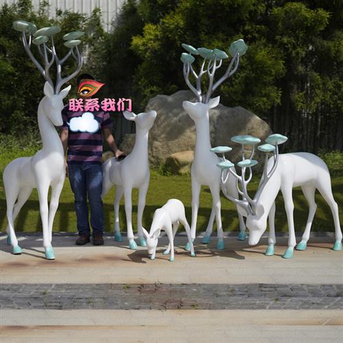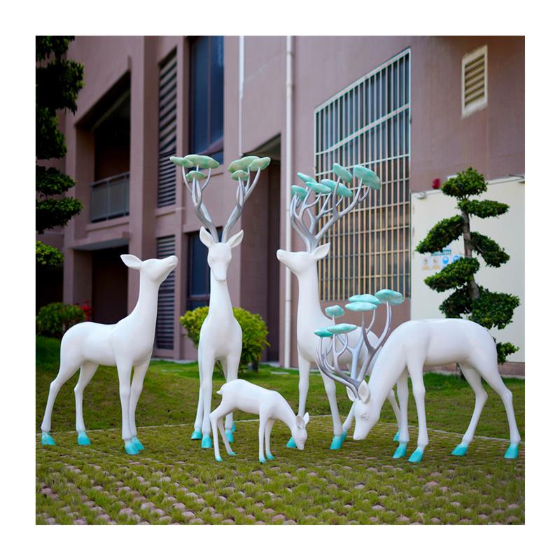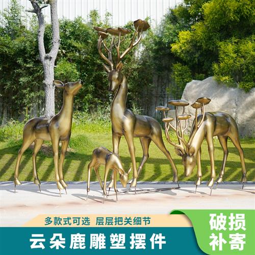 仿铜白鹿雕塑玻璃钢抽象园林景观动物小品户外大型梅花鹿美陈摆件