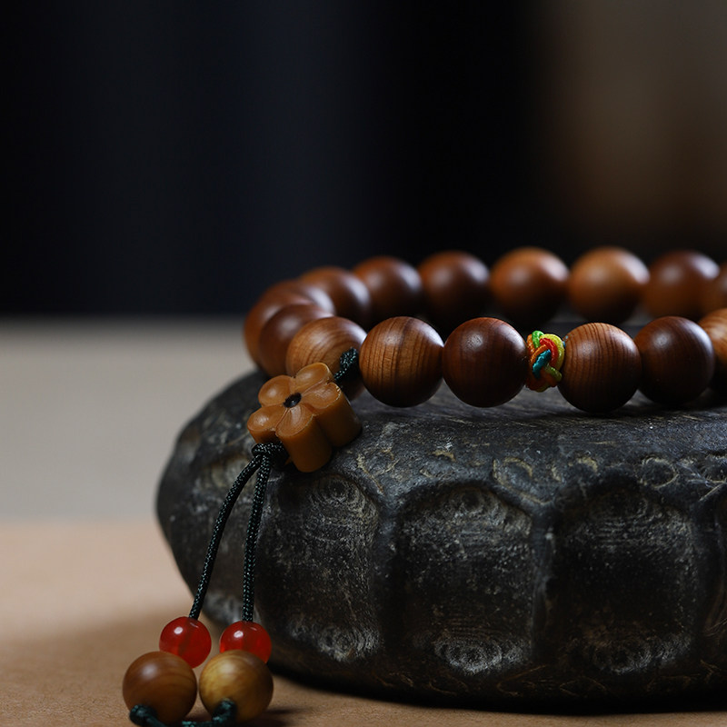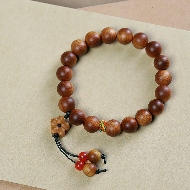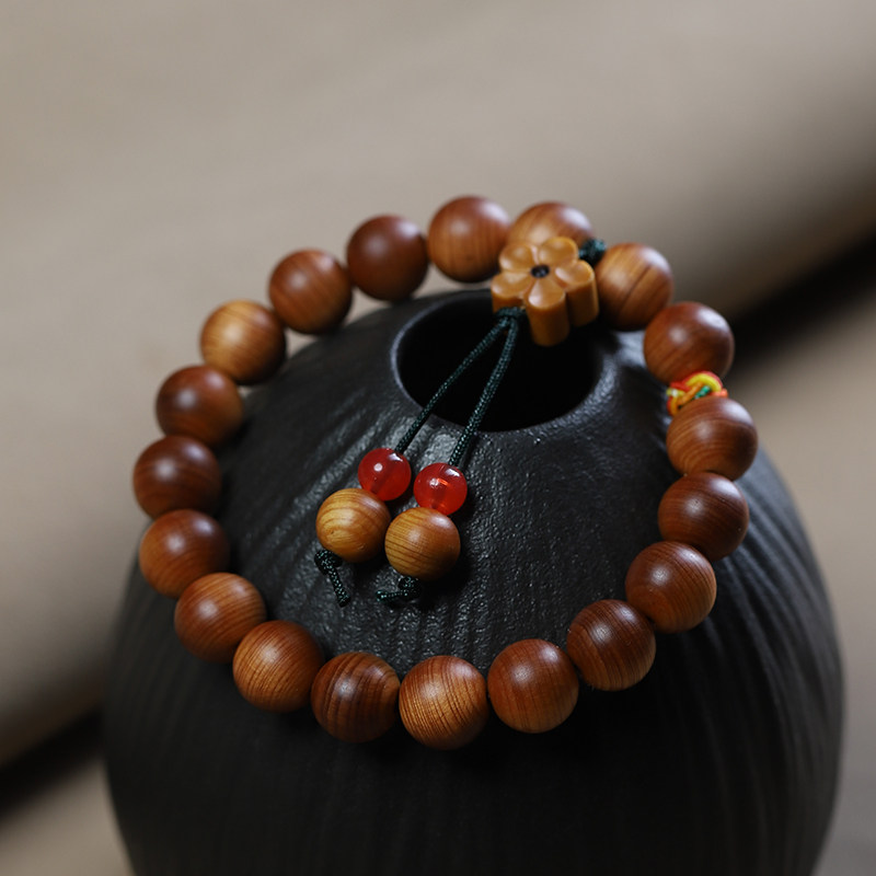 高油太行陈化崖柏单圈手串女木质佛珠盘玩文艺手链小花吊坠珠文玩