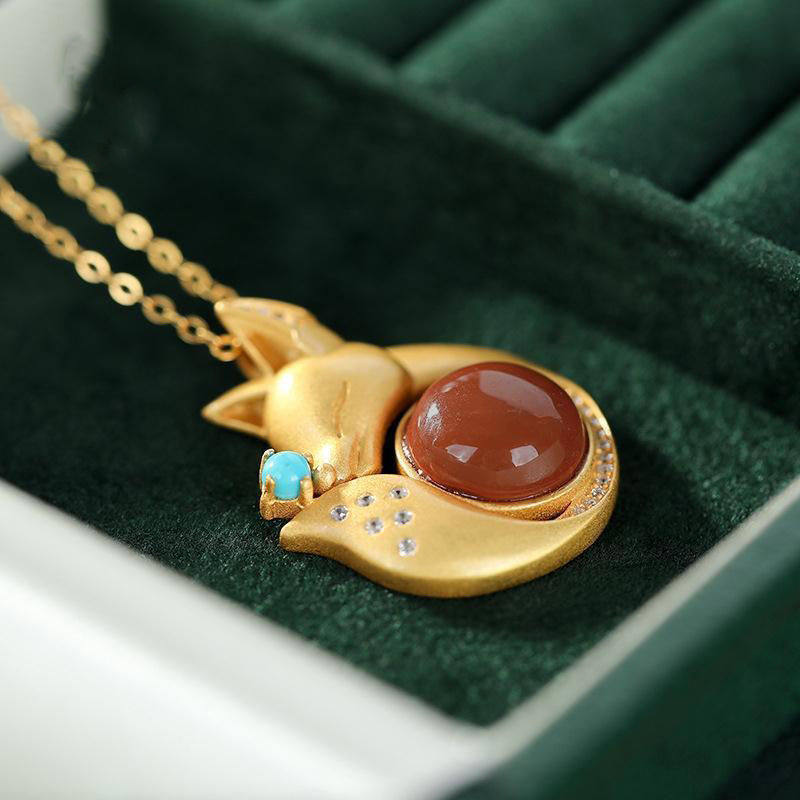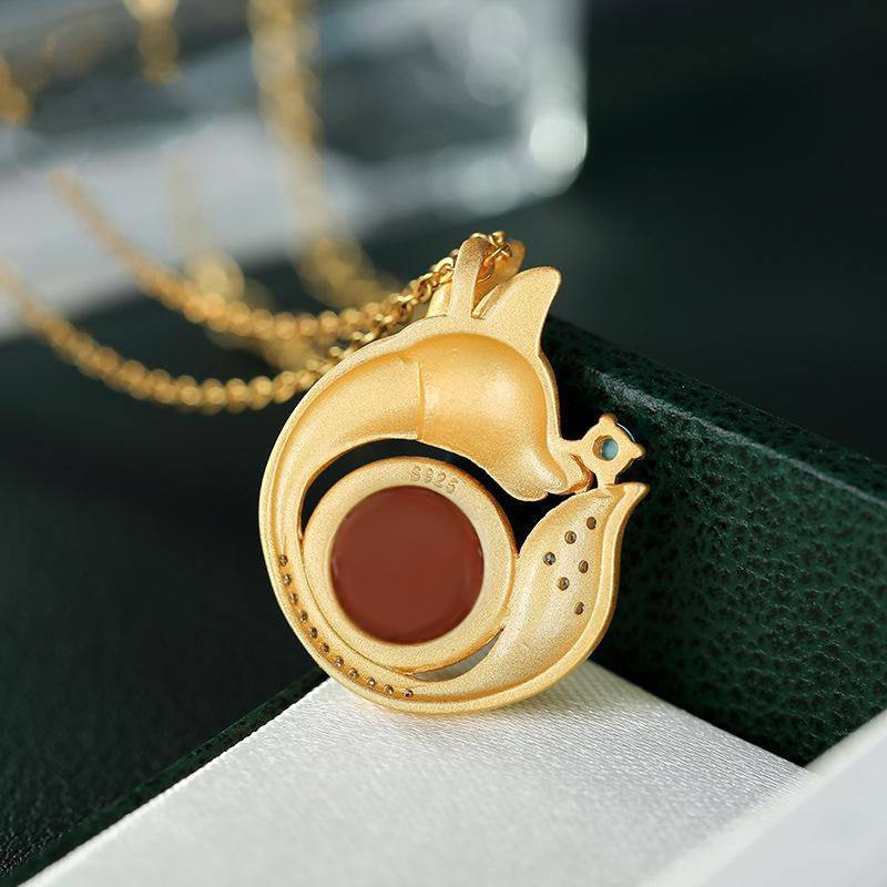 沙金故宫上新古风吊坠女简约时尚创意狐狸仿仿南红石女项链项