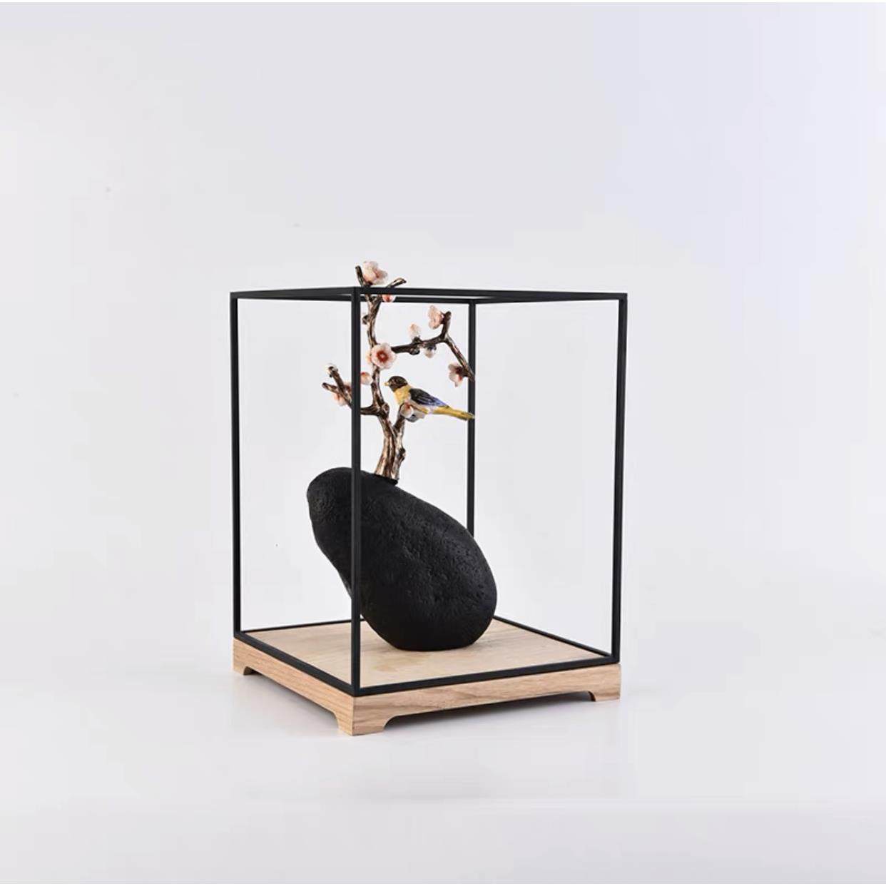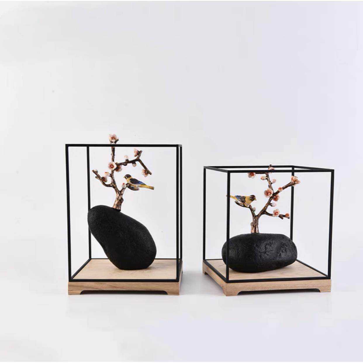 新中式梅花树枝小玄鸟摆件BJ1117样房关隔板断装柜软摆设电视柜家
