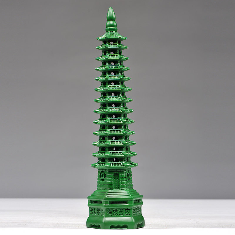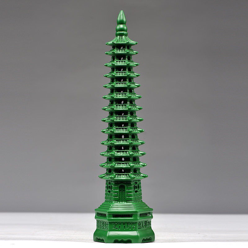 绿色木质13层文昌塔摆件实木雕刻十三层文昌塔家居办公送礼工艺品