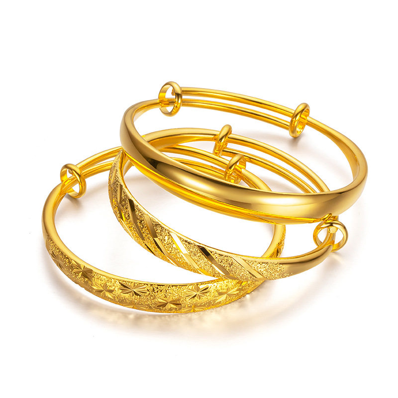 黄色沙金流星雨推拉手镯子10mm宽蛇肚满天星光面手环女生日送礼物