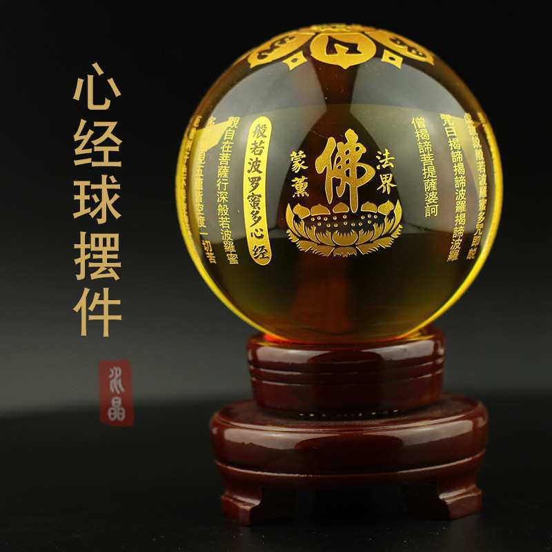 必应黑曜石开业10摆件韵水晶球摆件晶有厘米送礼客厅金黄色新居球