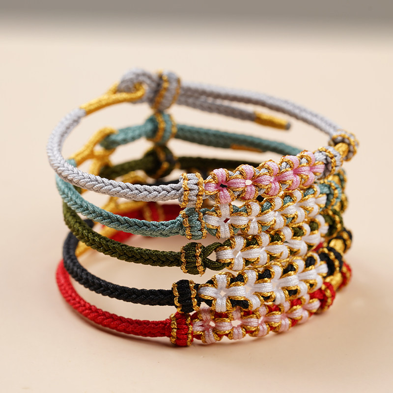 手绳桃花半成品可穿黄金转运珠本命年红绳手链diy材料包自编手串