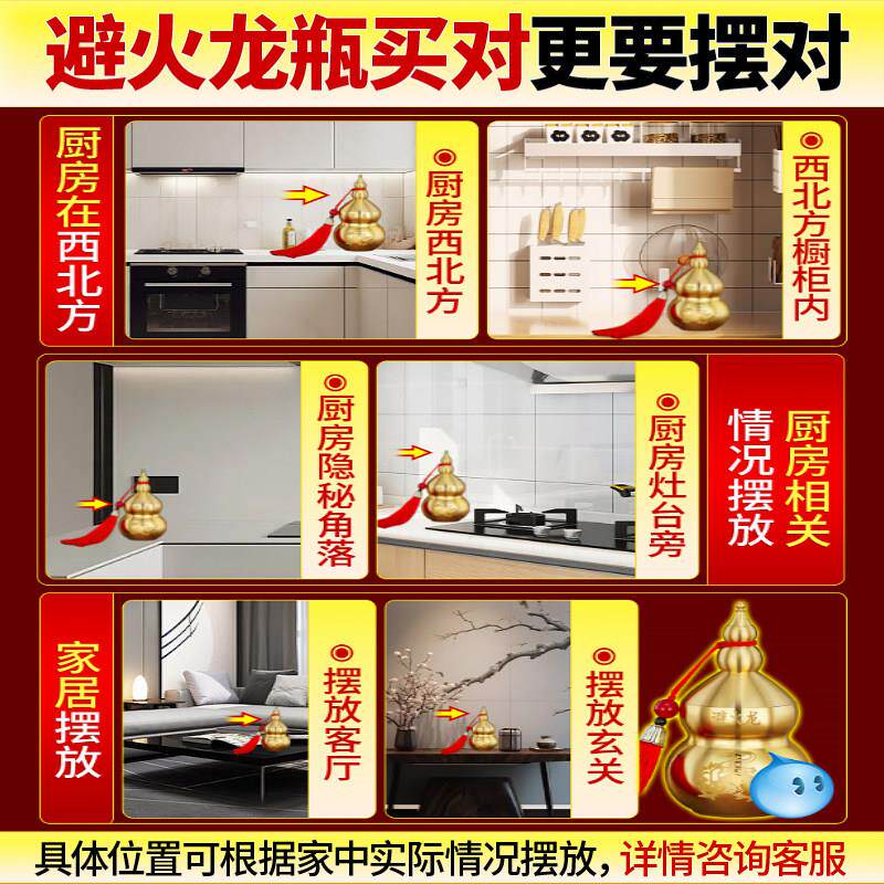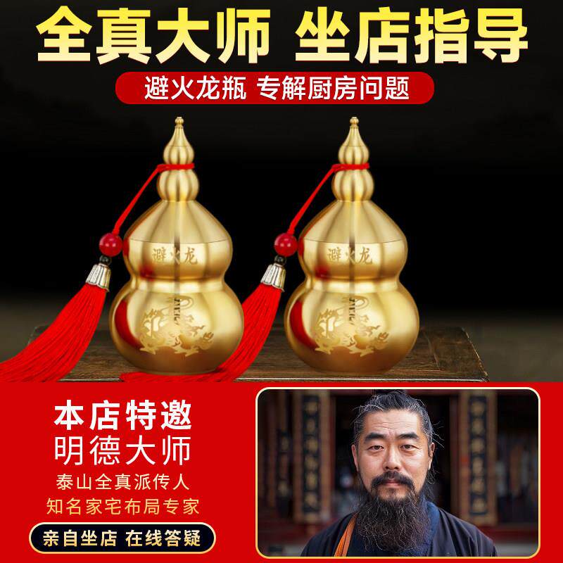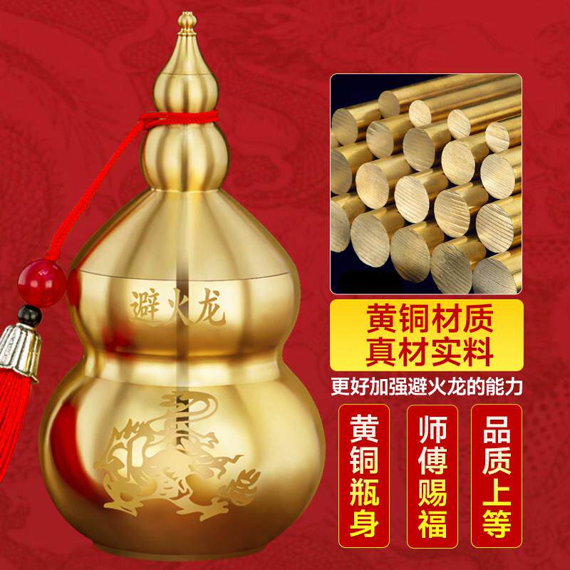 避火龙瓶子厨房西北角黄铜必壁火龙瓶碧黄水晶碎石辟家居葫芦摆件