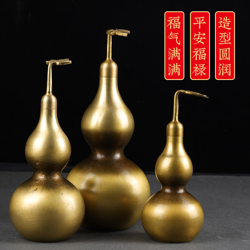 可开盖纯黄铜开口葫芦摆件大小号送五帝钱玄关前台办公室老板桌子