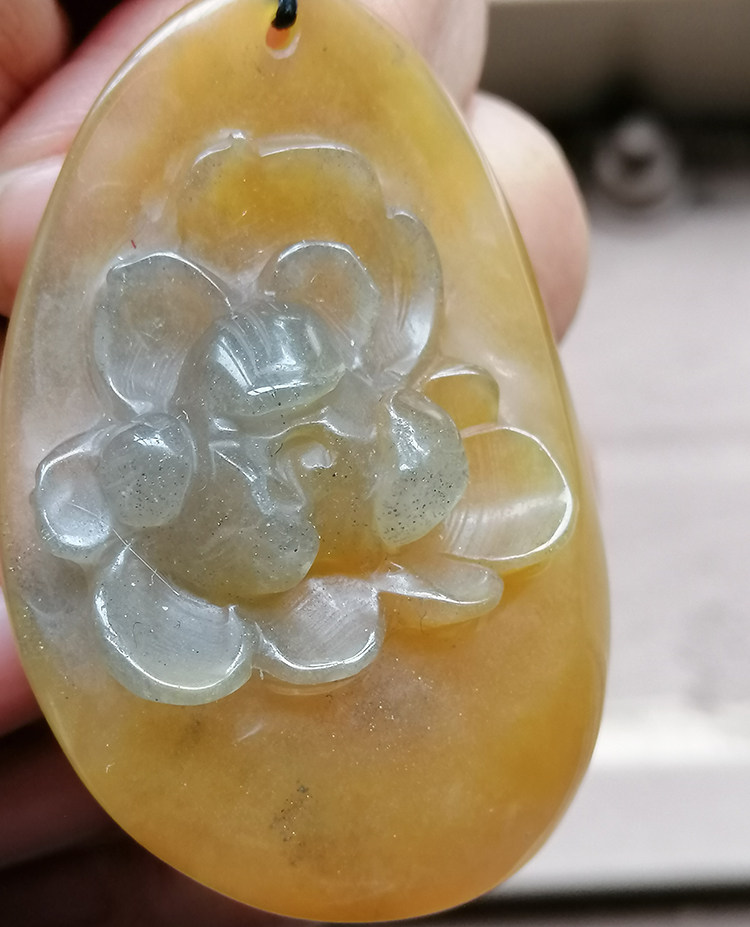新疆金丝玉宝石乌鸦皮澄黄色吊坠