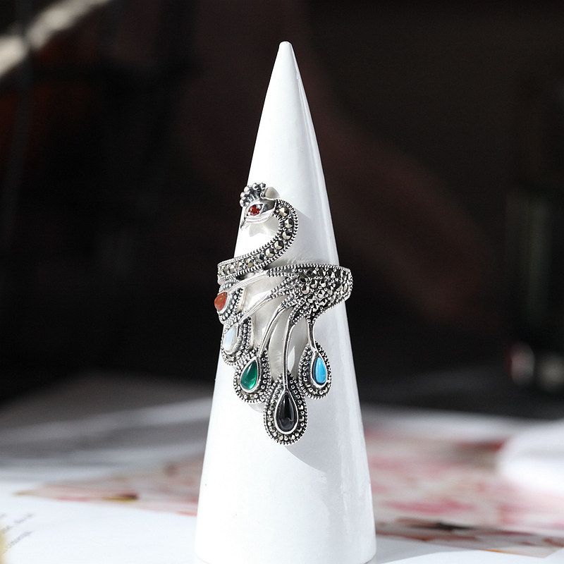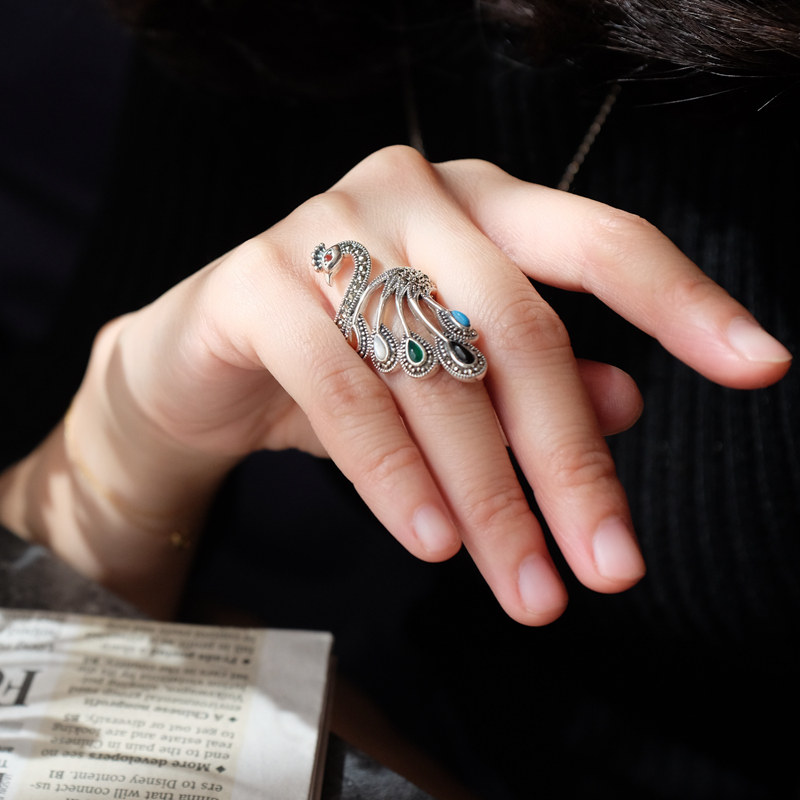 孔雀南方南方纯银饰品个性小众设计泰银复古风女款夸张食指戒指
