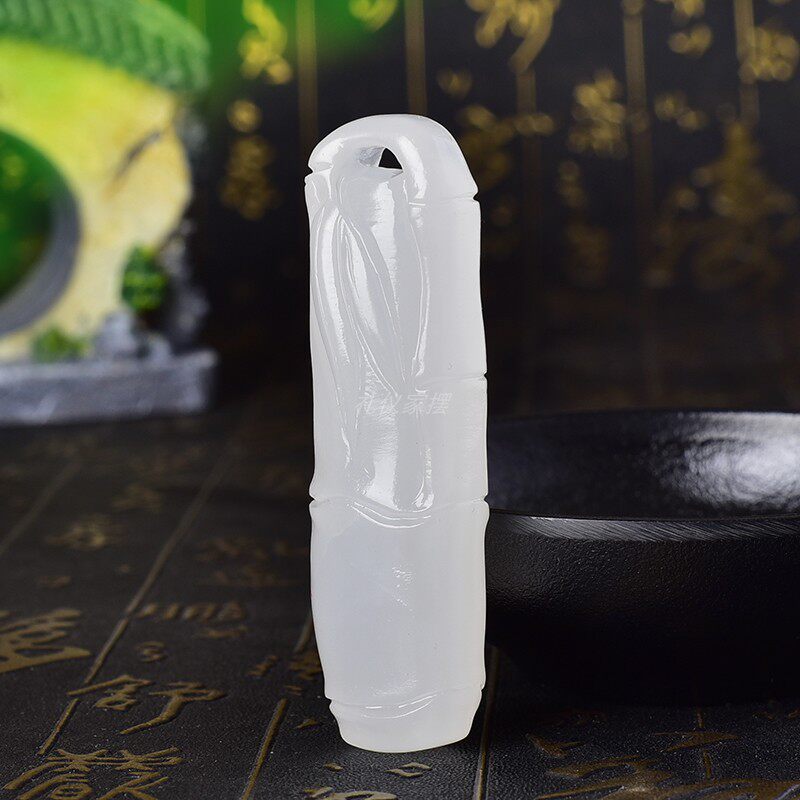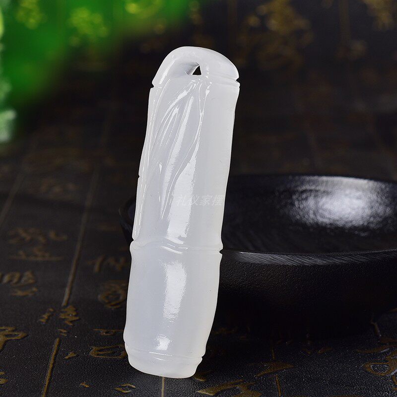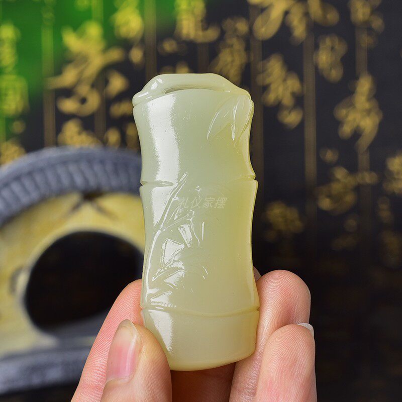 天然青玉黄玉白玉竹节装饰摆件车挂diy玉石竹节随手礼+绳子+打孔