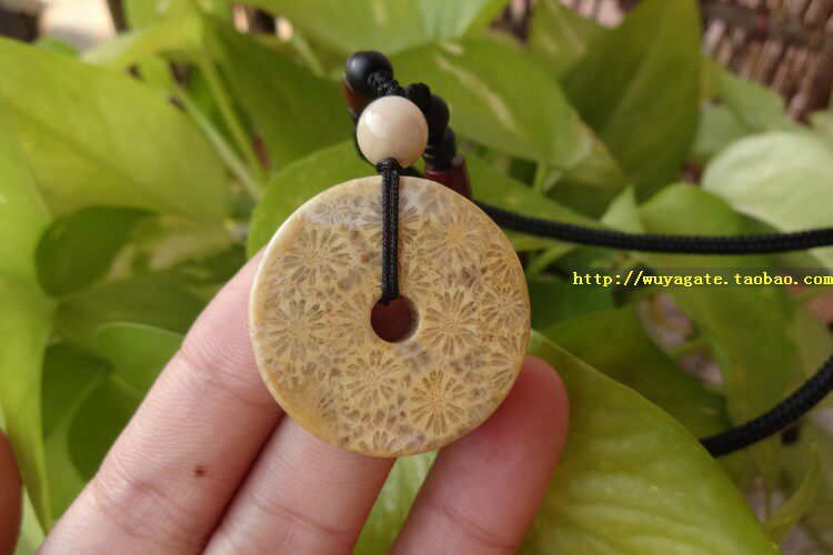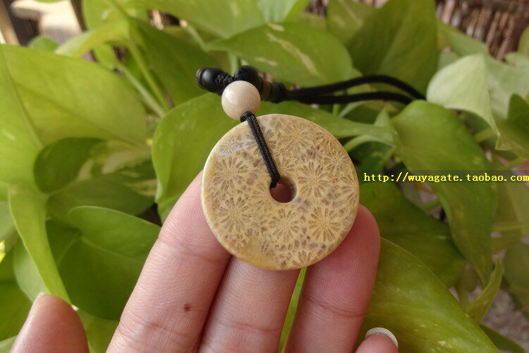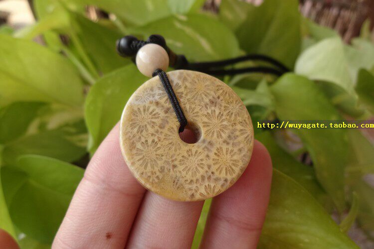 原矿无烧天然珊瑚玉化石满花菊花石黄色平安扣吊坠女男款挂件百搭