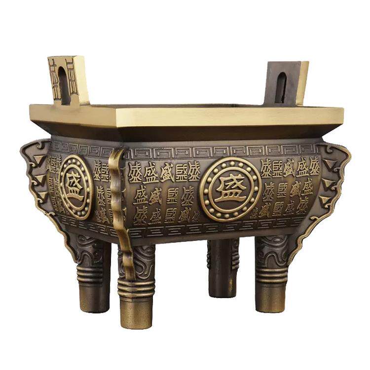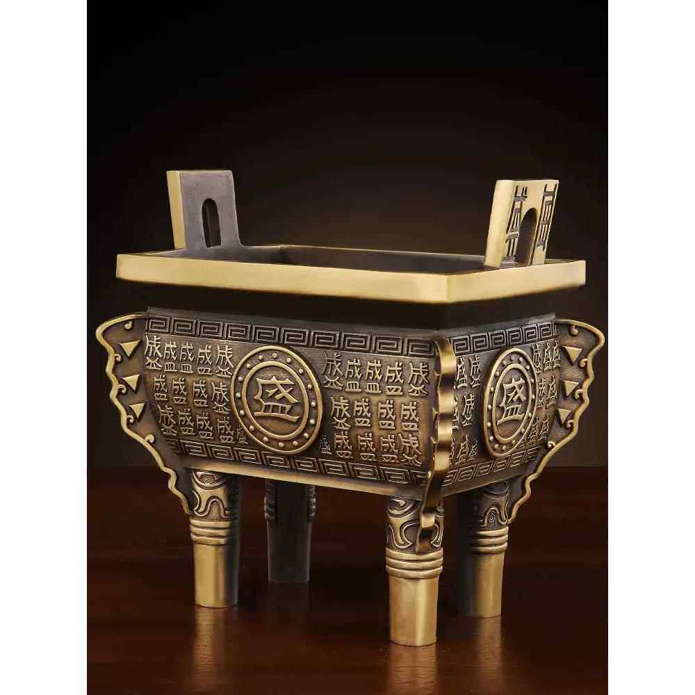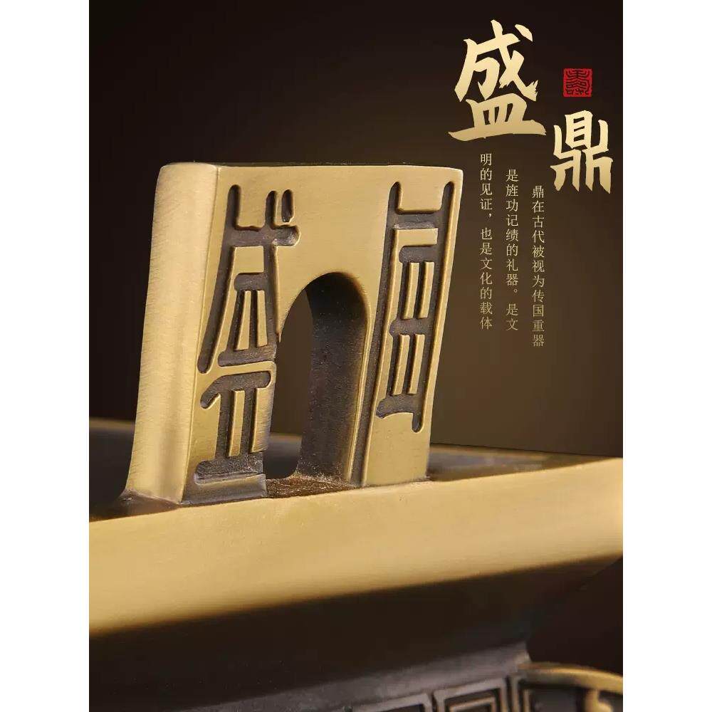 黄铜鼎炉摆件鼎盛千秋方鼎家用客厅玄关铜鼎装饰店铺办公室桌面