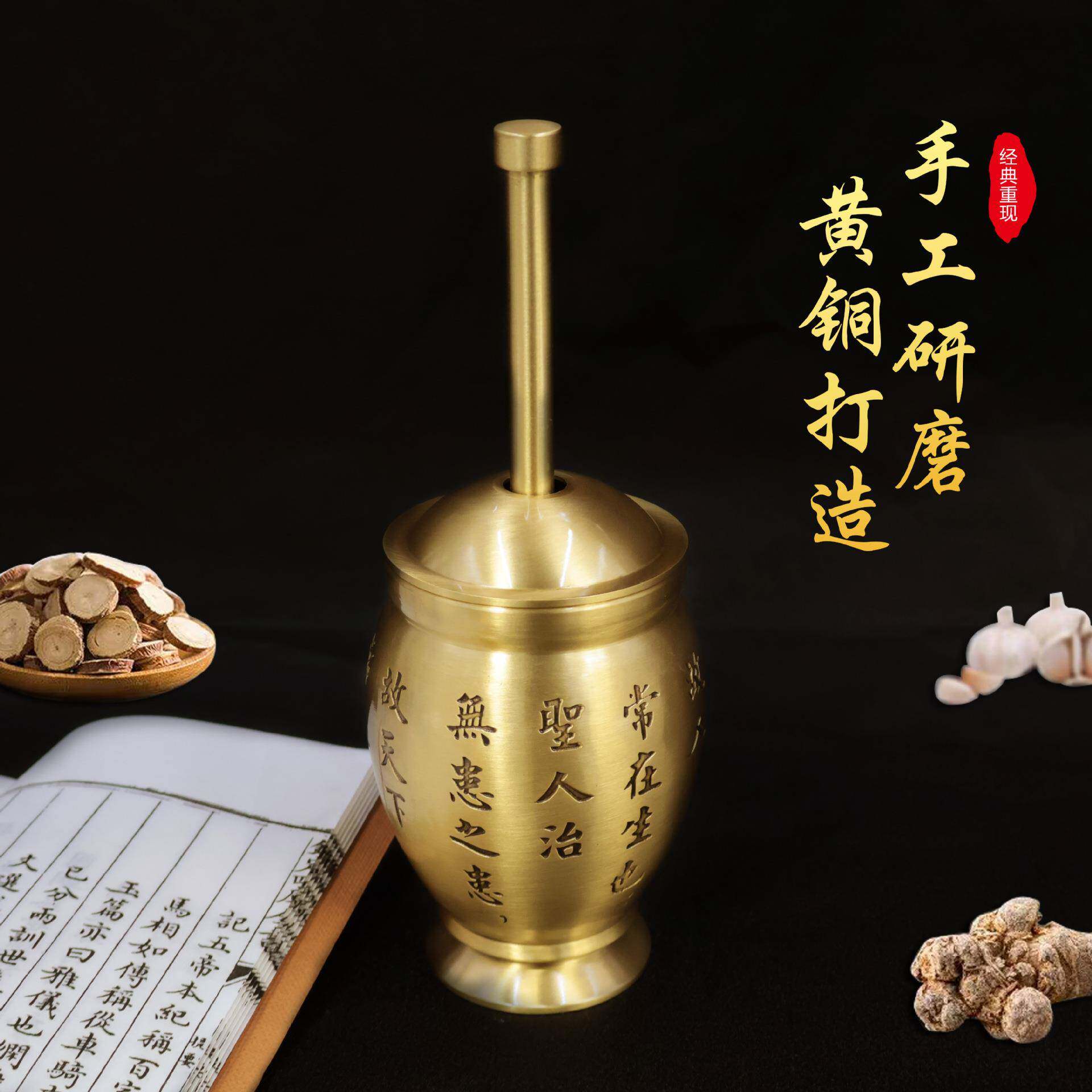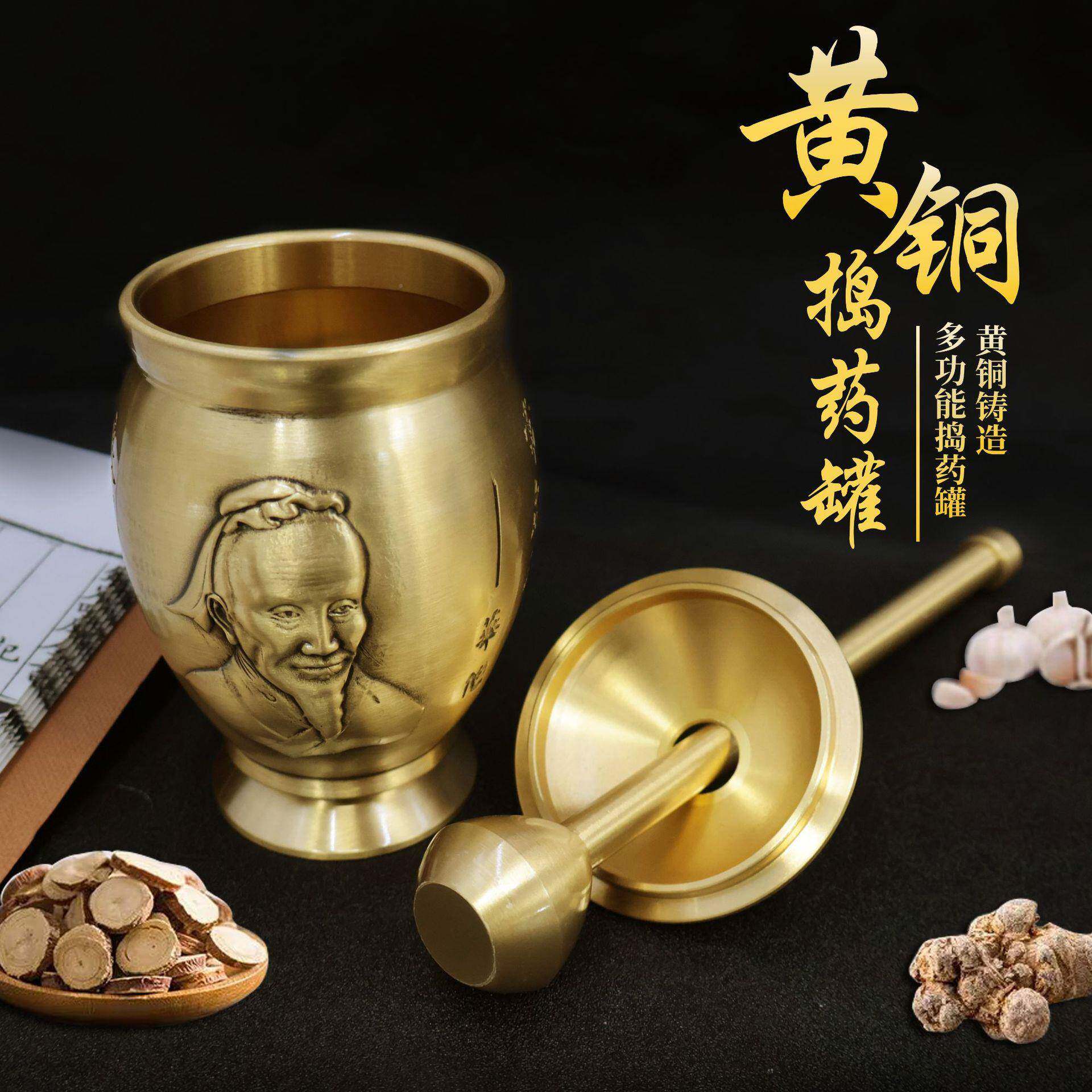 仿古黄捣药罐中药篆刻华佗捣铜蒜泥罐家用见描述中药房用铜捣药罐
